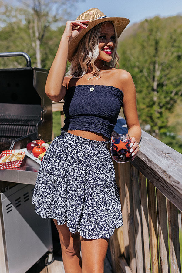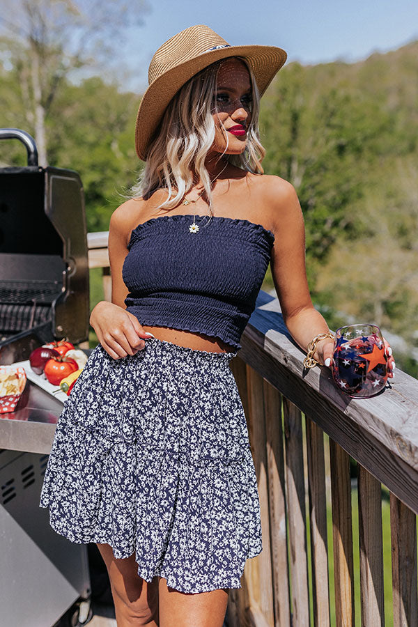 Enjoy those summer lake days in the most fashionable way with this adorable navy tube top featuring lightweight four-way stretch smocked material and a fitted bandeau silhouette with a straight sleeveless neckline and a cropped hemline! Measurements