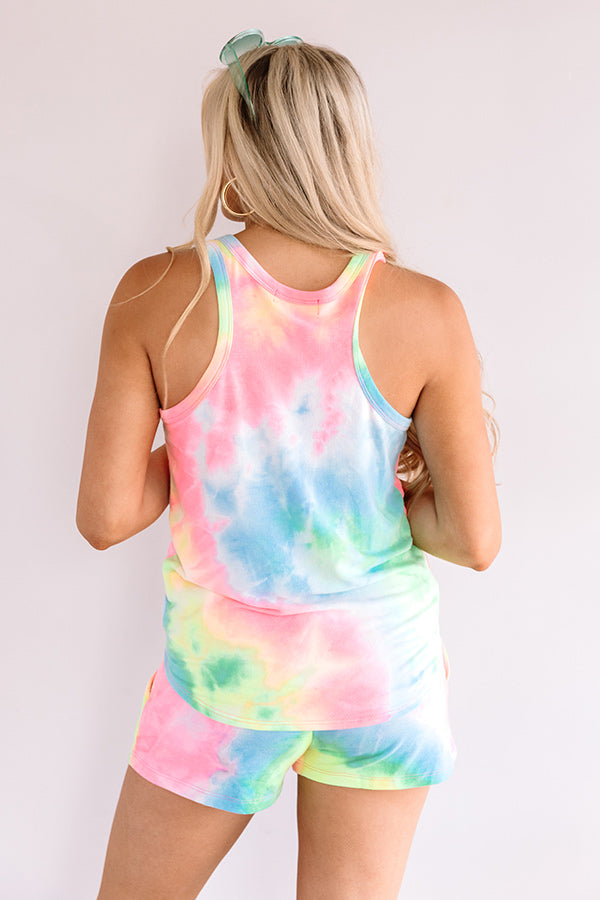 Chill all summer long in style with our adorable "Lake Season" tank featuring soft lightweight material patterned with blue, pink, and green hued tie dye, a scooped neckline, 1-inch sleeveless shoulder straps with a racerback fit, and a relaxed silhouette that falls into a rounded hemline! This comfy piece pairs perfectly with some matching shorts, sunnies, and some fuzzy slippers for the ultimate two-piece lounge look!