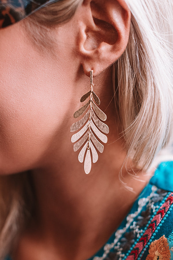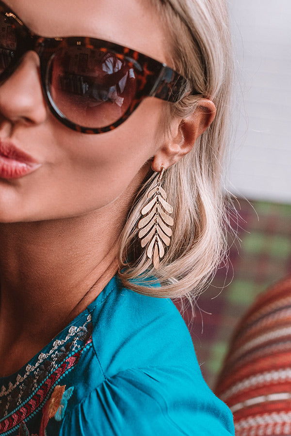 Get off the plane looking stylish after "landing in Laguna" by accessorizing with these adorable statement earrings featuring dangling gold leafs!