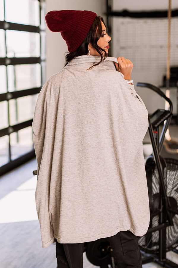 Travel in style with this fashionable birch hued jacket featuring soft lightweight material, low accent side pockets, an oversized flap collar neckline, long bell sleeves, and an ultra draped open front silhouette that cascades into a straight knee-length hemline! Measurements