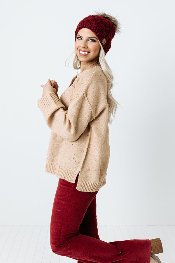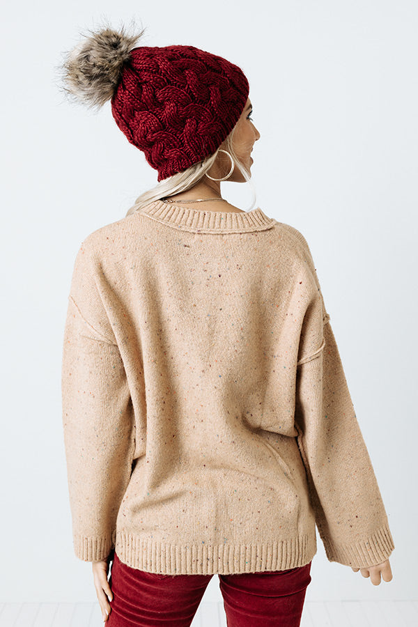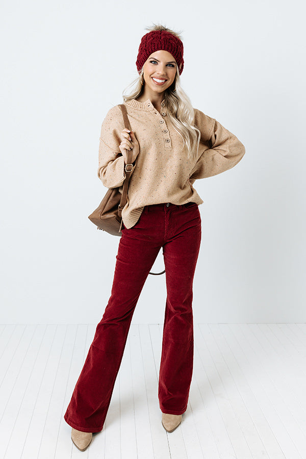 Give a last farewell to the warm weather with this cute natural hued transitional sweater featuring soft knit material, a button up bodice with a rounded neckline, long loose sleeves, and a slouched silhouette that falls into a straight hemline!