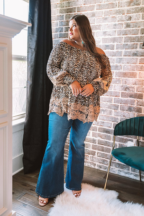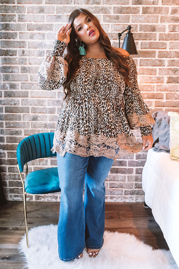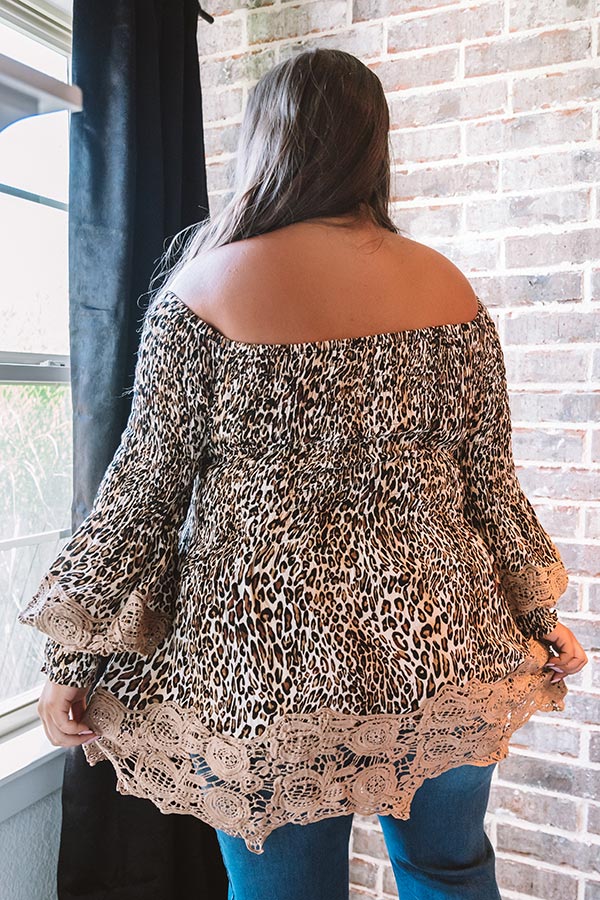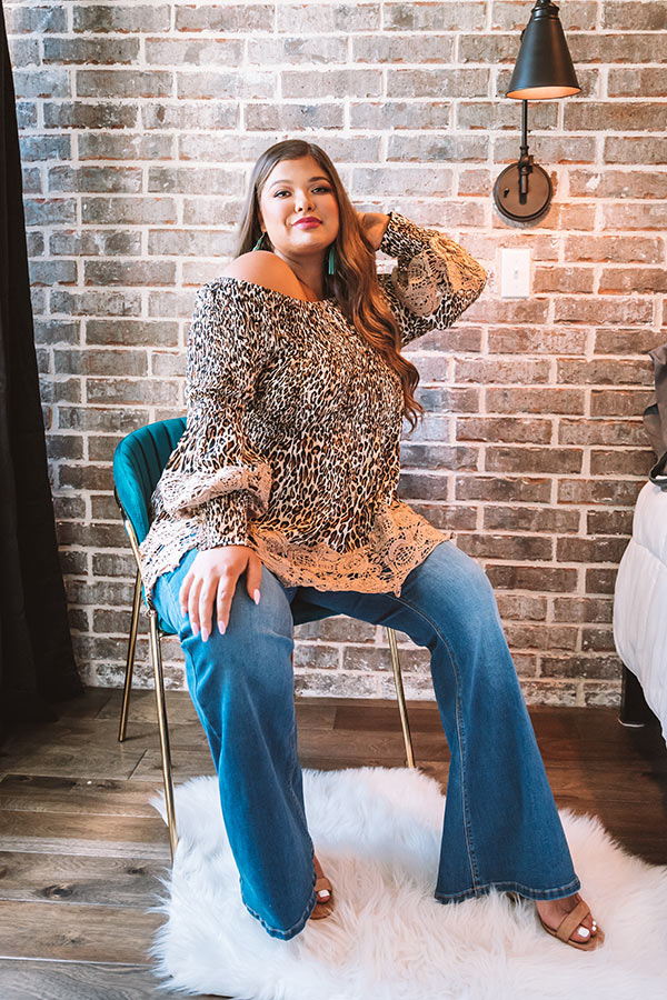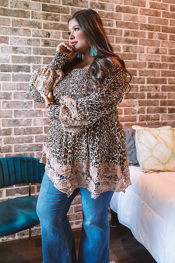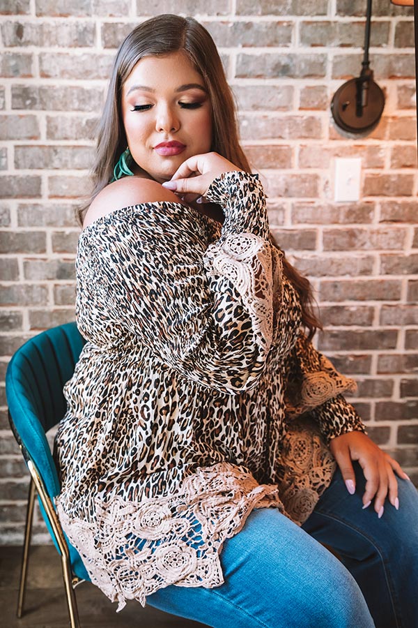 Plus Size - We have no doubt you and this adorable top will have a "lasting friendship" with its lightweight material, bold brown and and black leopard print, a smocked bodice with a wide neckline that can be worn on- or off-the-shoulder, long bubble sleeves with fitted cuffs, intricate lace detailing, and a relaxed silhouette that falls into an uneven hemline! This cutie styles perfectly with some dark wash flares and neutral mule heels, but you can also wear it with some black flares, our "Go On Faux Leather Heel in Tan," our "Merlot Nights Hat in Black," and "The Aria Leopard Leather Clutch!" Measurements