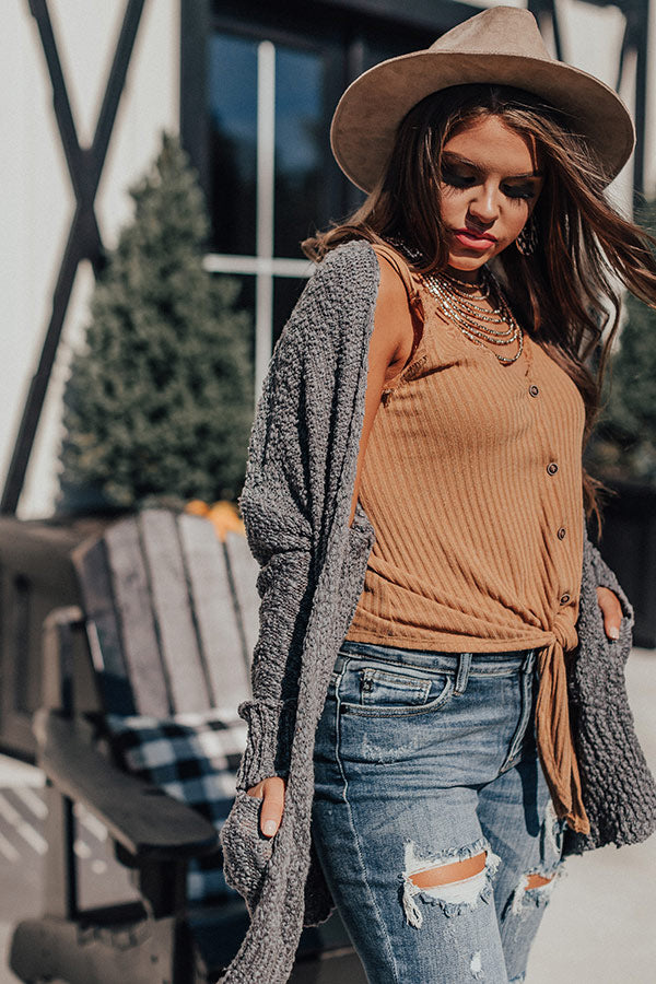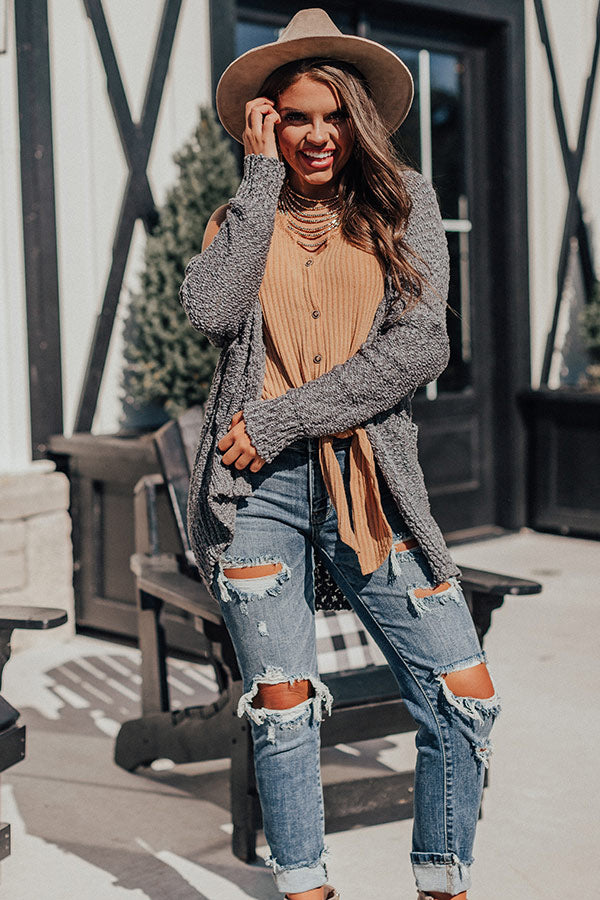 Latte Cozy Popcorn Knit Cardigan In Dark Grey
