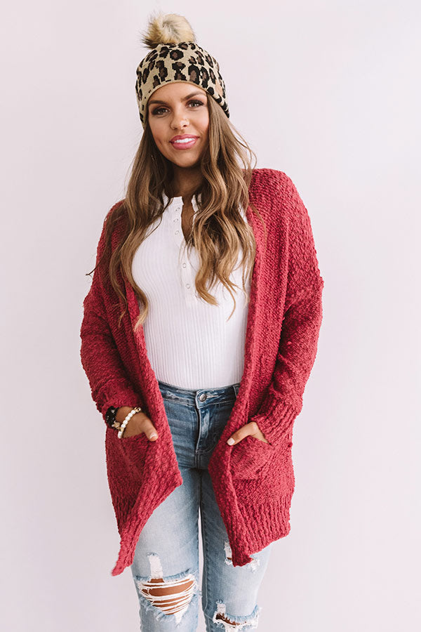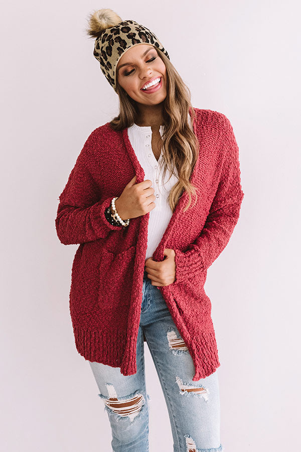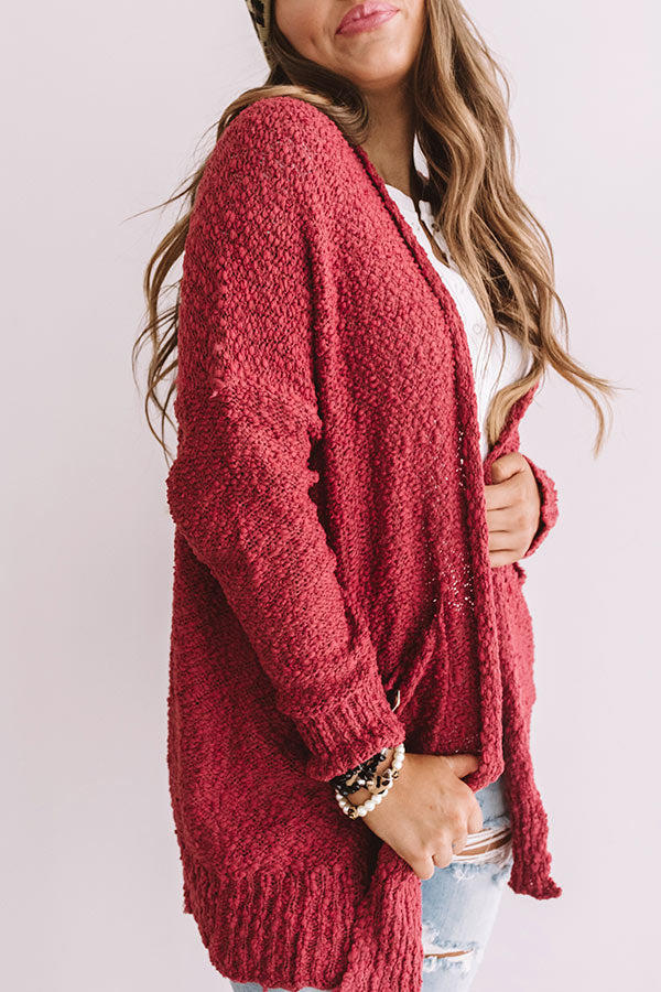 Latte Cozy Popcorn Knit Cardigan In Rose