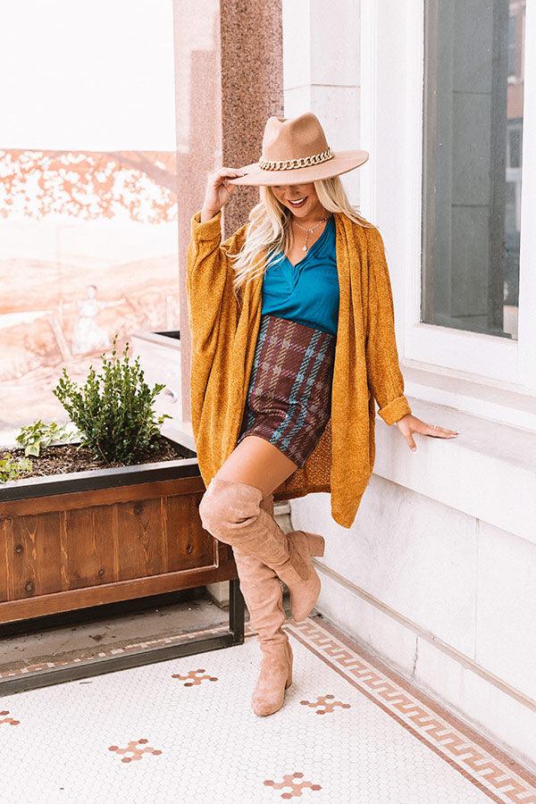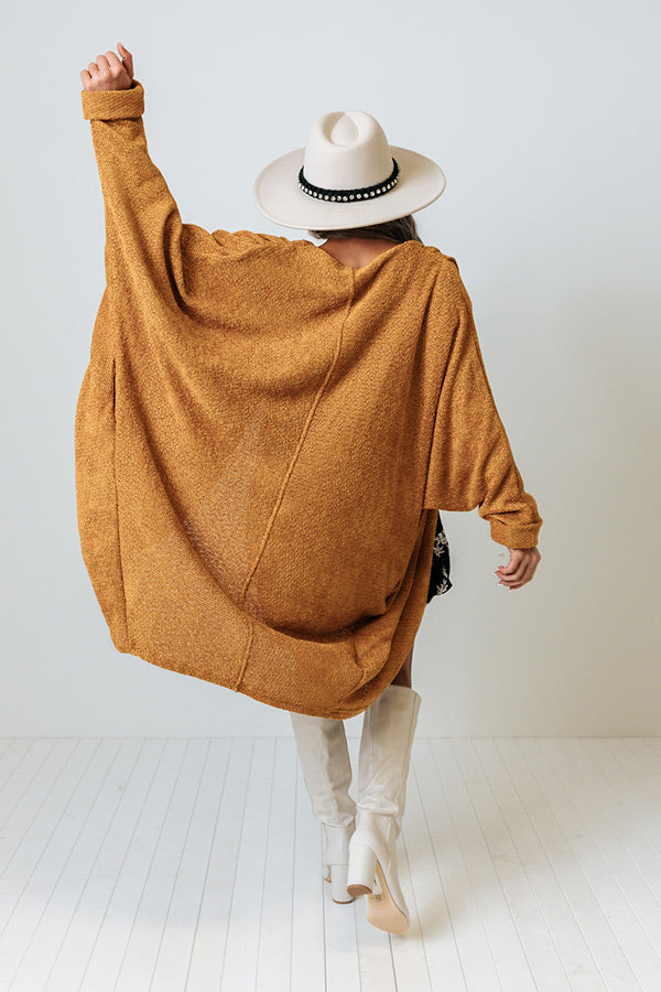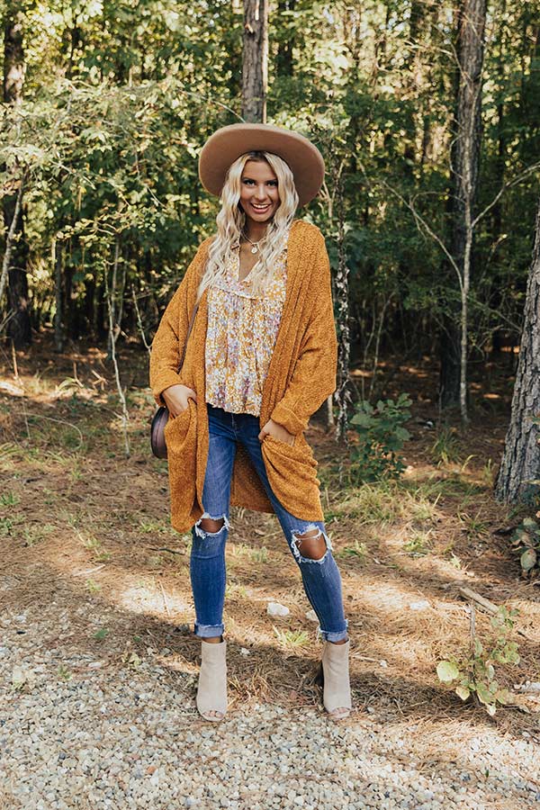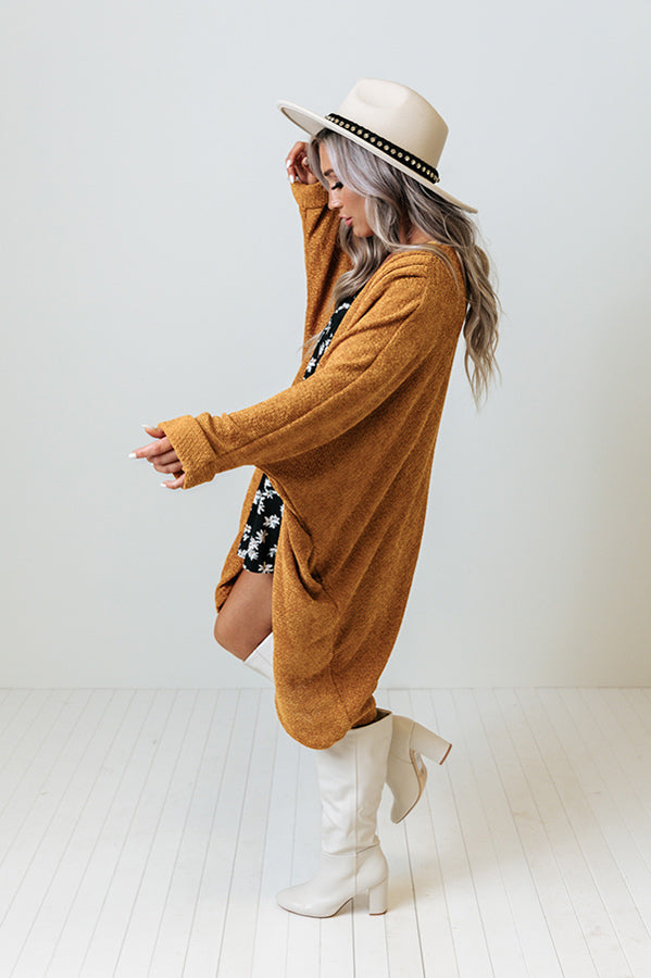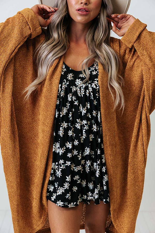 It's the most wonderful time of the year to layer up in style with our golden honey colored 'Latte Lifestyle' cardigan featuring soft lightweight tight knit chenille material, long batwing sleeves with rolled cuffs, and an ultra relaxed open front silhouette that falls into a rounded mid-thigh length hemline!