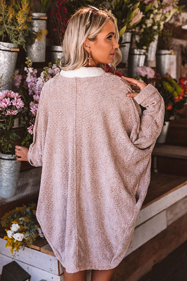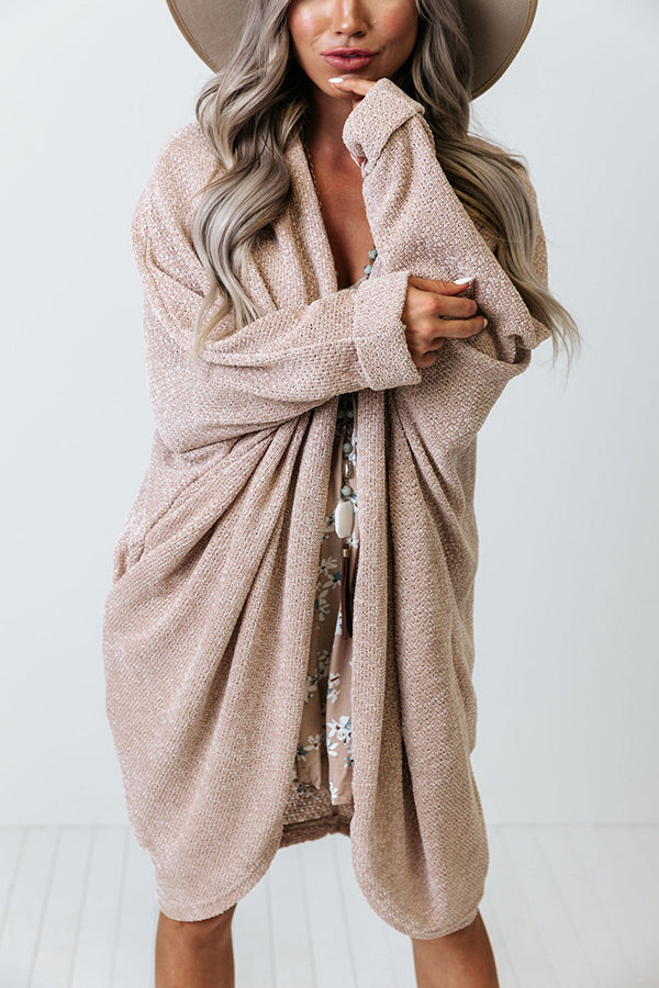 It's the most wonderful time of the year to layer up in style with our warm taupe colored 'Latte Lifestyle' cardigan featuring soft lightweight tight knit chenille material, long batwing sleeves with rolled cuffs, and an ultra relaxed open front silhouette that falls into a rounded mid-thigh length hemline!