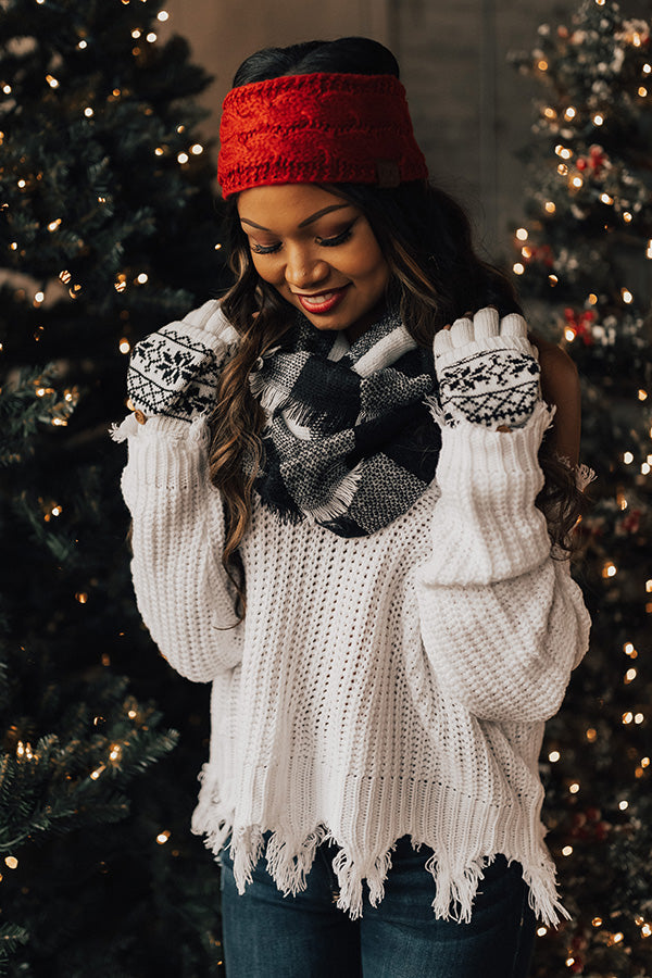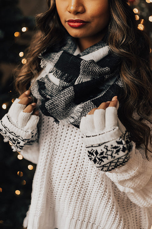 Latte Luxe Infinity Buffalo Check Scarf In White