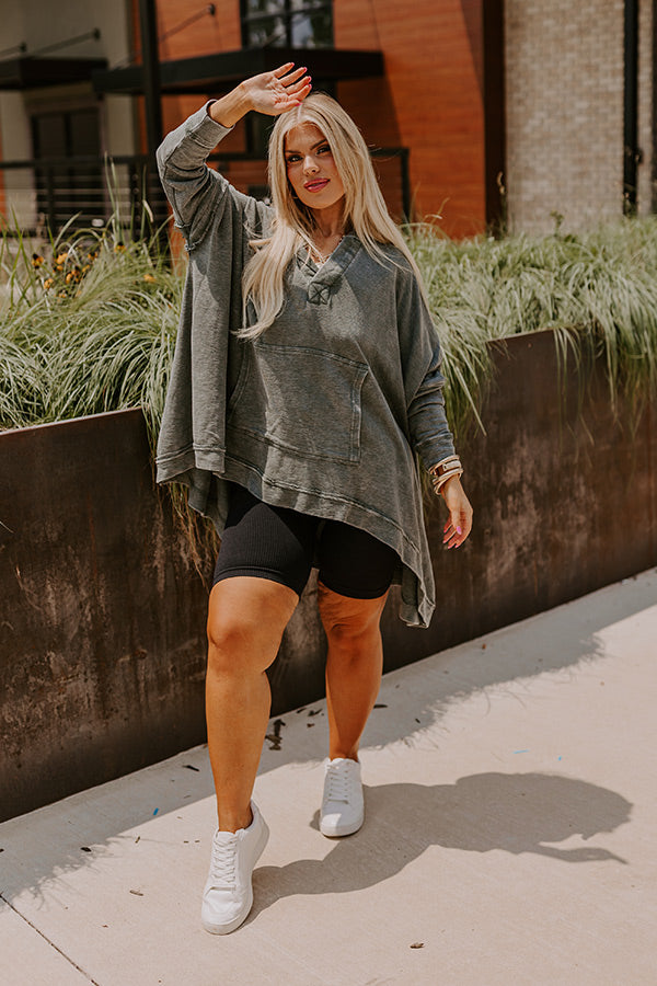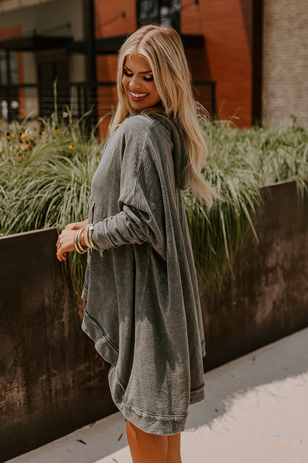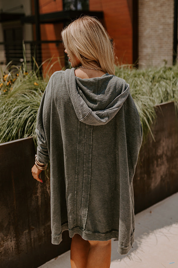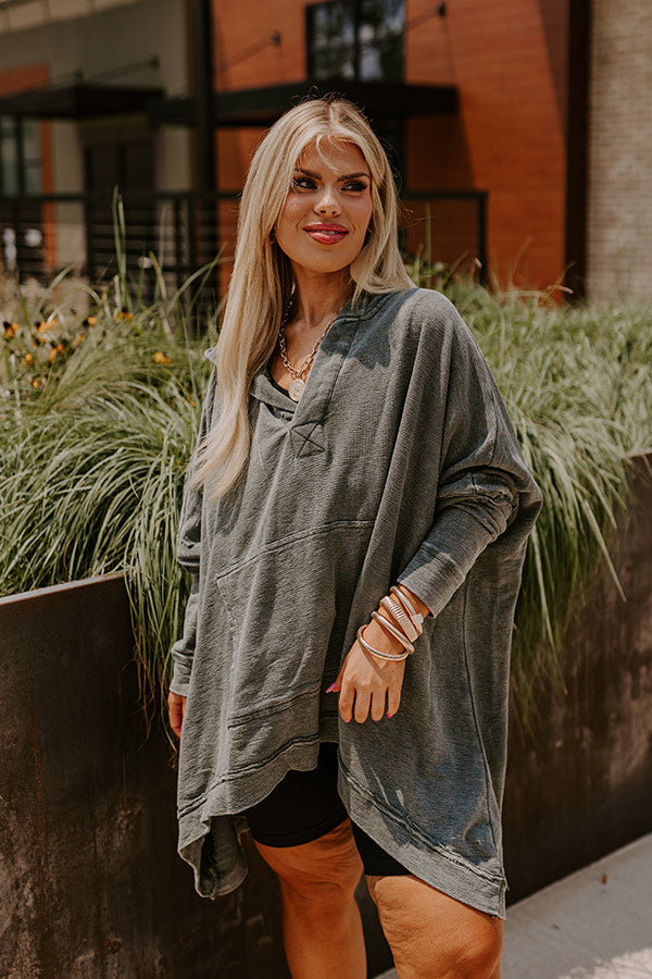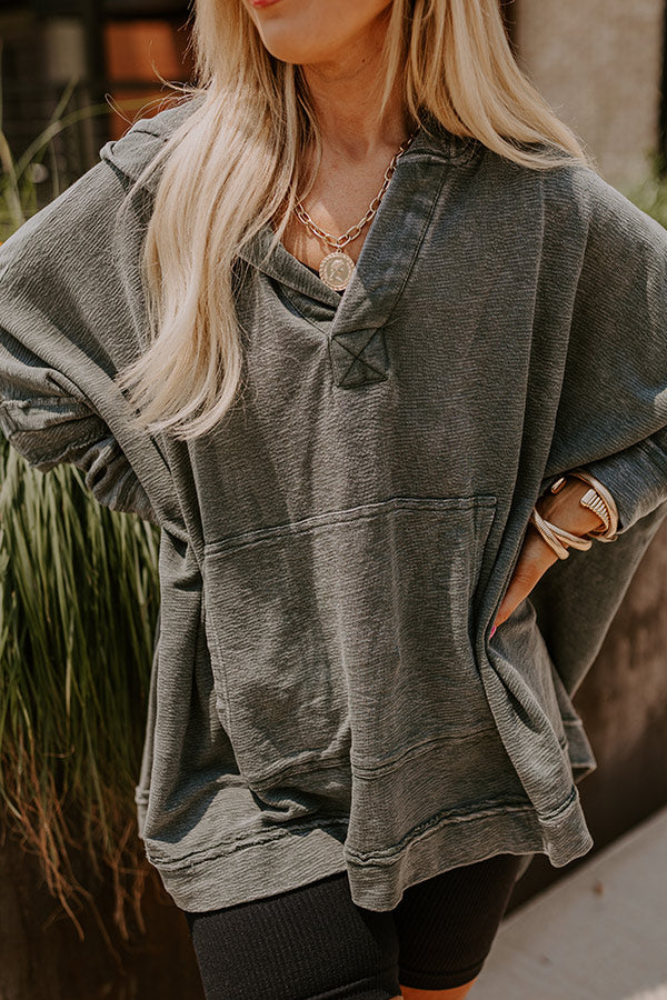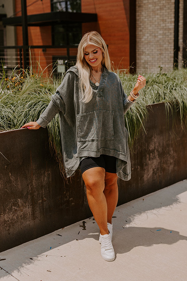 Latte Sipping Mineral Wash Oversized Hoodie in Deep Forest Curves