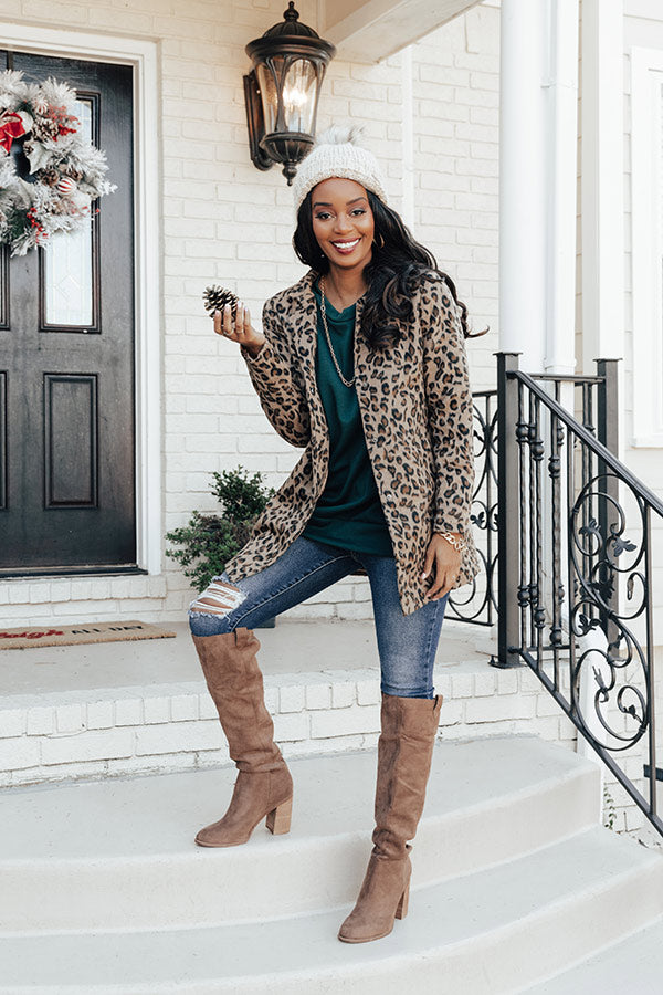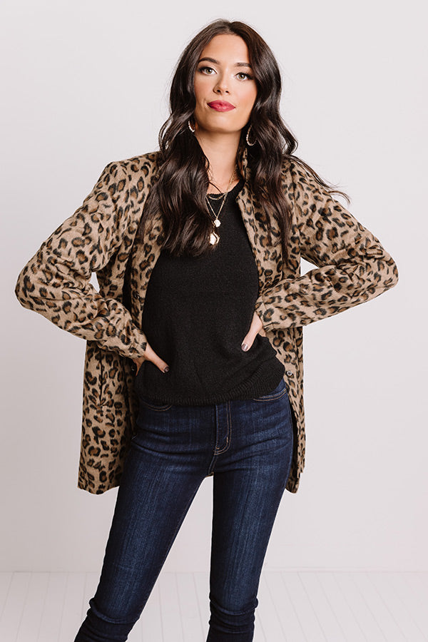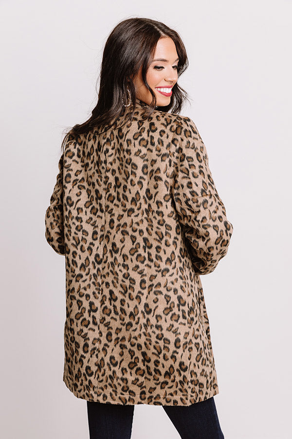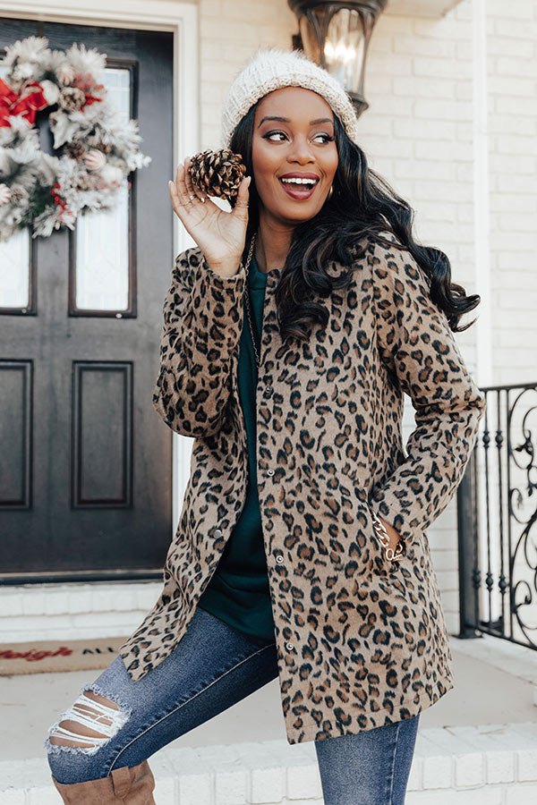 Keep your style fierce in our gorgeous "Latte Social" coat featuring faux hide material patterned with a bold brown and black leopard print, long loose sleeves, a collared neckline, low accent side pockets, and a draped silhouette open front silhouette that cascades into a straight upper-thigh length hemline! Measurements