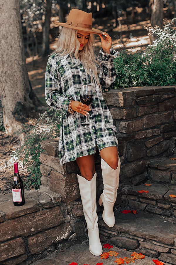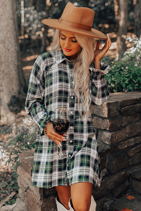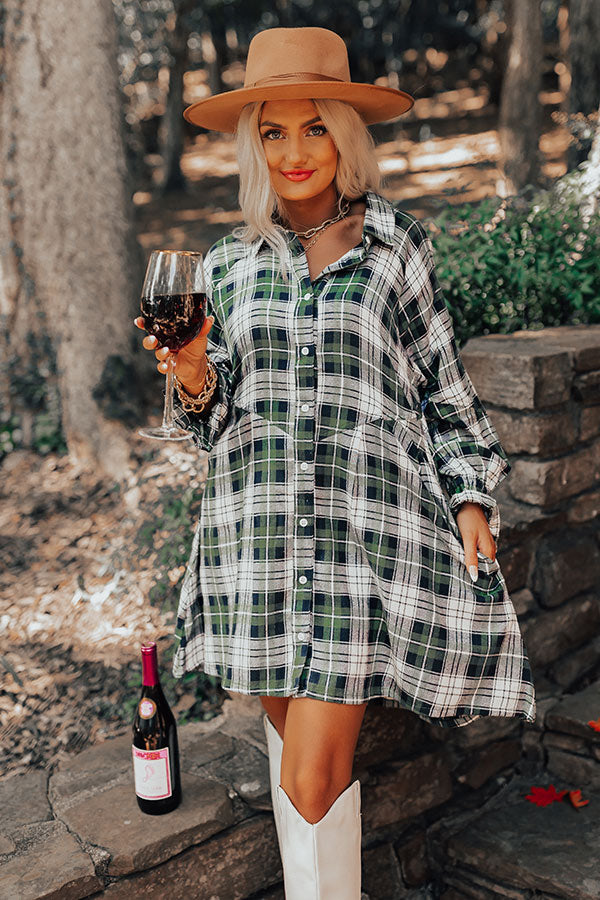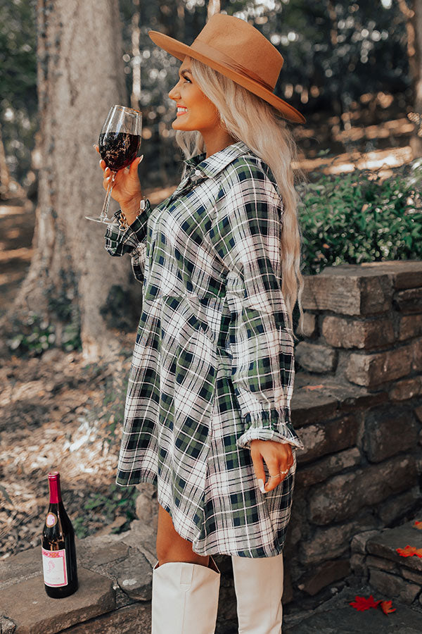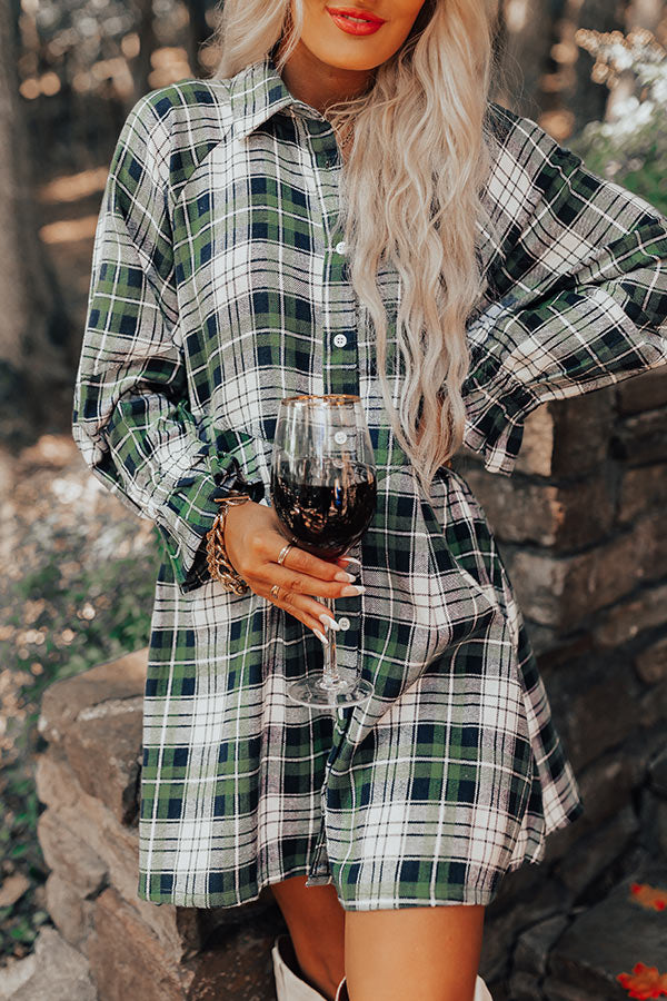 Lattes And Love Flannel Dress In Green