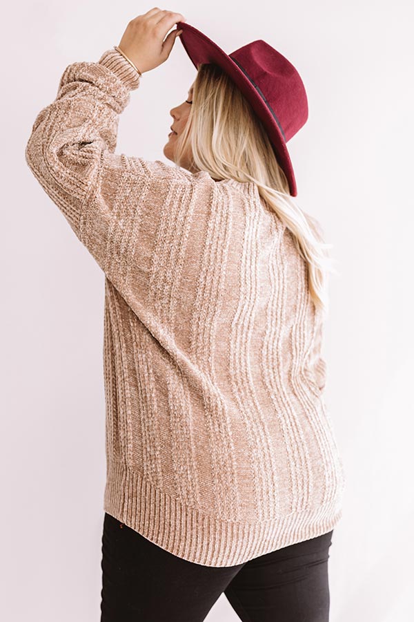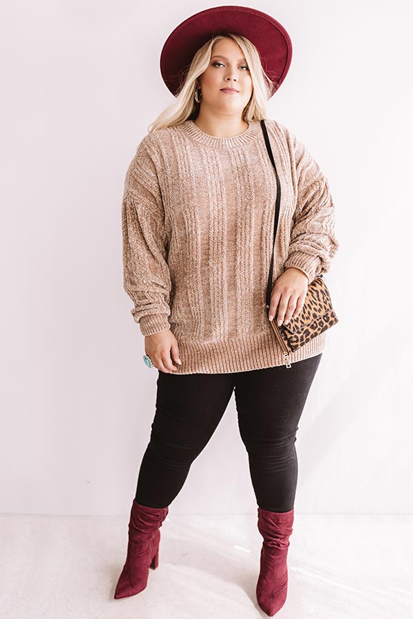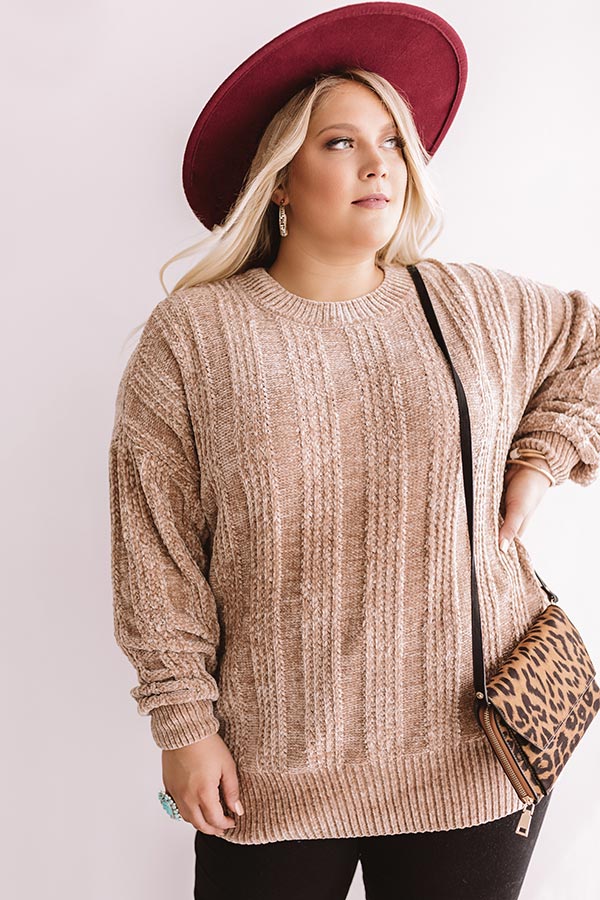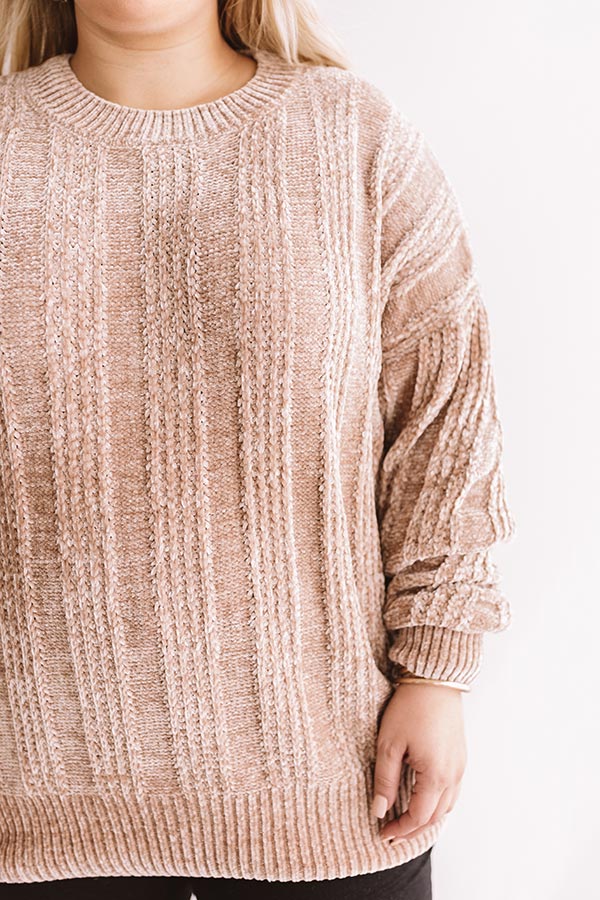 Lattes And Snuggles Cable Knit Chenille Sweater In Iced Latte Curves