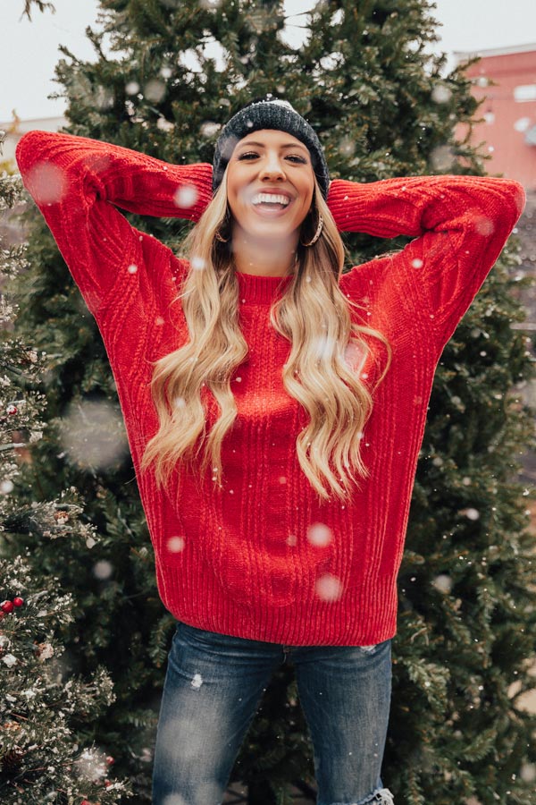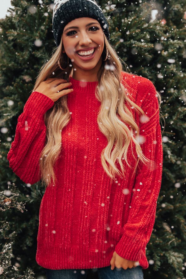 Lattes And Snuggles Cable Knit Chenille Sweater In Raspberry