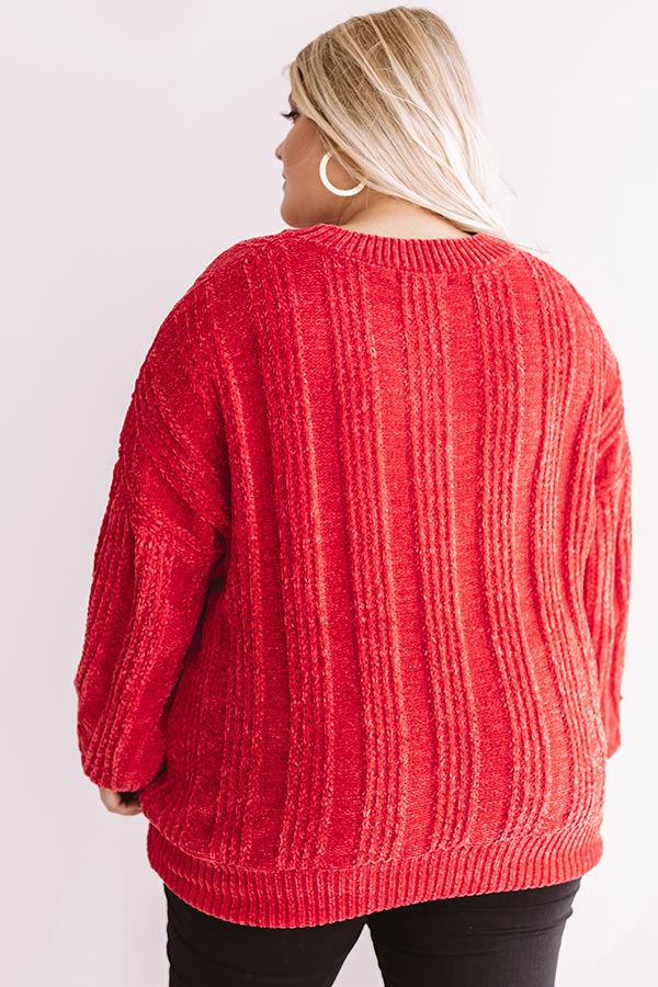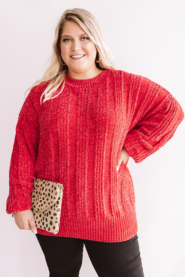 Lattes And Snuggles Cable Knit Chenille Sweater In Raspberry Curves