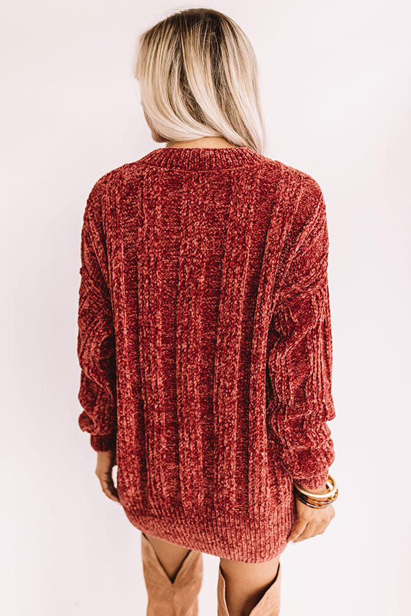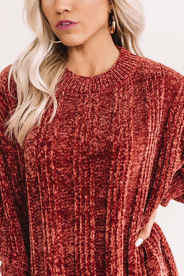 Lattes And Snuggles Cable Knit Chenille Sweater In Rustic Rose