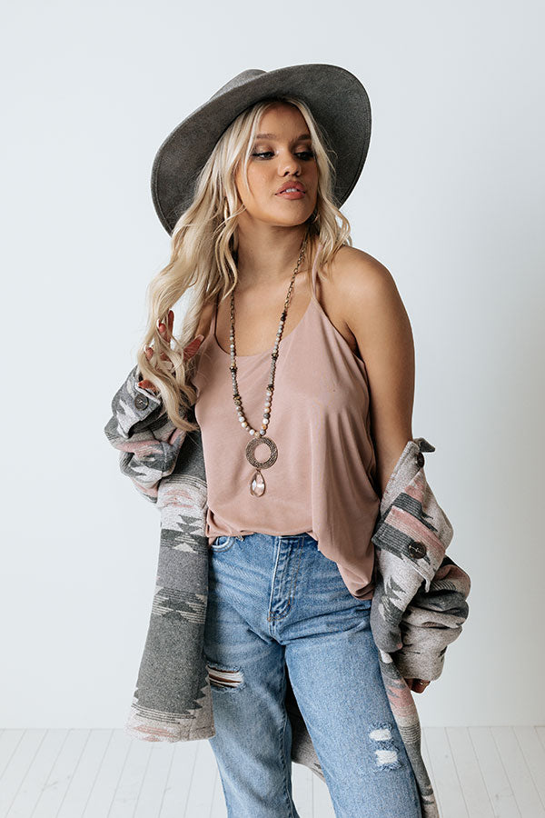 Our cute blush hued 'Laughter In The Air Shift Tank' is the upgrade your wardrobe basics have been asking for with its lightweight material, scooped neckline, spaghetti straps with a racerback fit, and a relaxed silhouette that ends in a straight hemline!