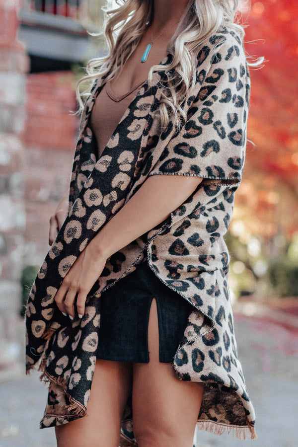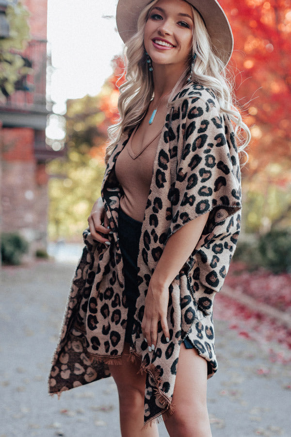 Layers Of Lovely Leopard Poncho in Beige