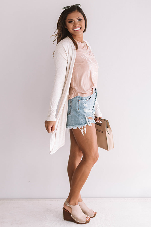This is the perfect cardigan to throw over a dress or put on with a pair of jeans for those long summer nights! The sides extend longer than the back, giving it a draped over look and the birch color will match any outfit! Measurements
