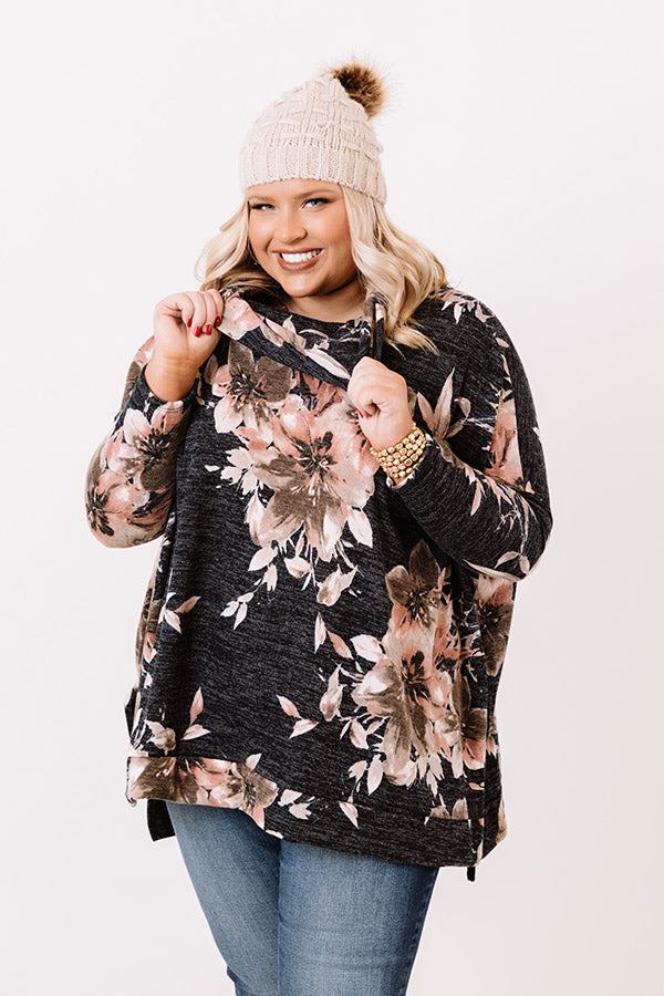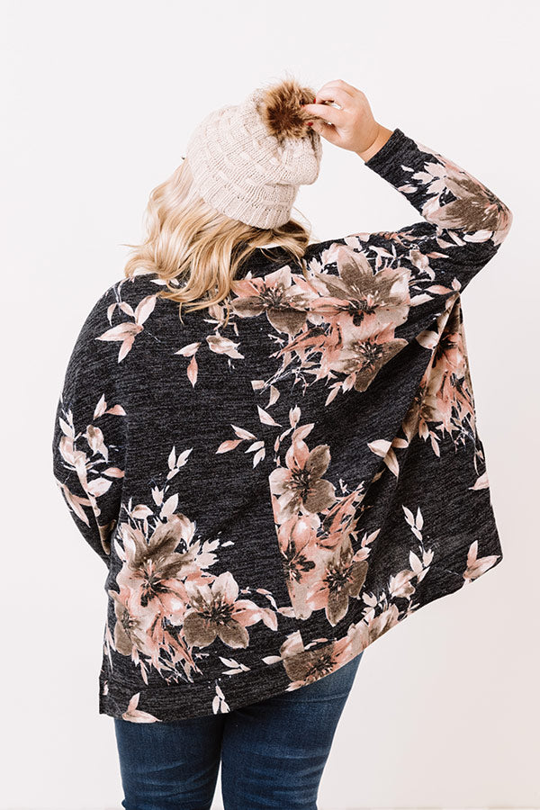 Plus Size - We have no doubt you will steal the show when you wear our heathered black 'Lead Character' tunic featuring soft lightweight material patterned with a large pink, cream, and martini olive hued floral print, a bunched turtle neckline, long loose sleeves, and an ultra slouched silhouette that falls into a straight upper-thigh length hemline! Measurements