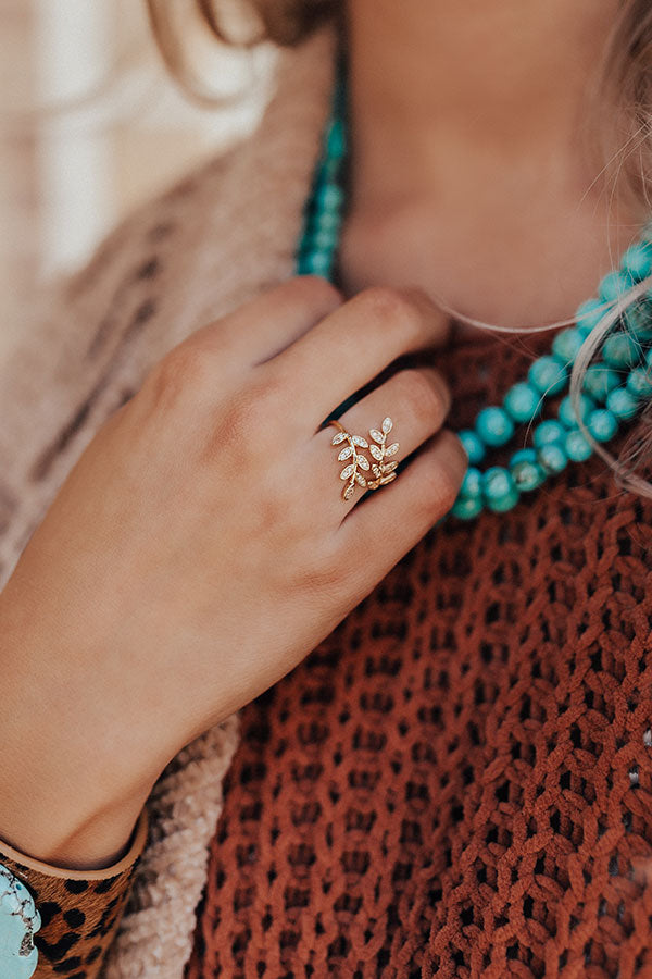 Add a subtle hint of gold to any OOTD with our dainty "Leaf It To Me" ring featuring an adjustable wrapped band with leaf accents!