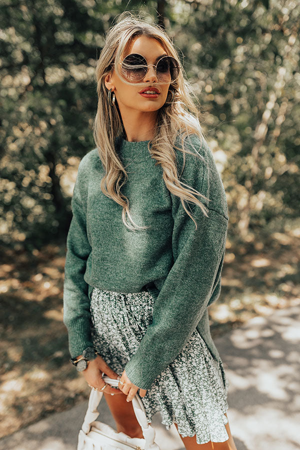 Upgrade your fall essentials with our casual cute green 'Leaf Trail Sweater' featuring ultra soft lightweight tight knit material, a high collared neckline, long loose sleeves with fitted cuffs that can be rolled, ribbed trim detailing, and a relaxed silhouette that falls into a straight high/low hemline with accent side slits! Measurements