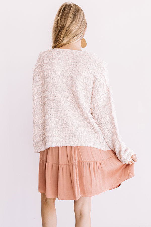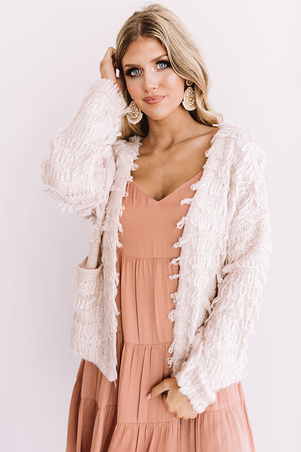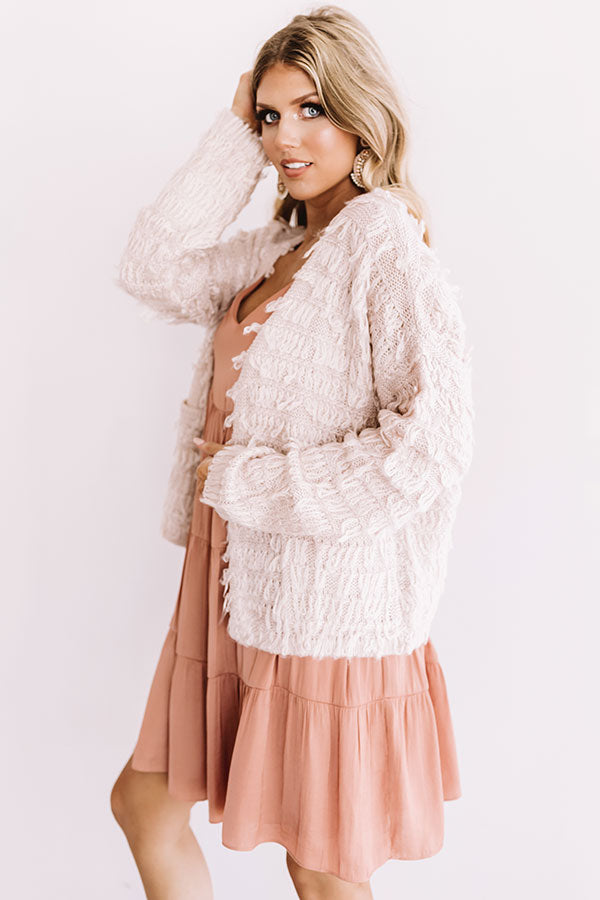 If you are looking for a snuggly look with stand out style then the "Leave Knit To Me" light blush cardigan is made just for you with its loose knit material with an oversized snag texture, long loose sleeves with fitted cuffs, hidden accent side pockets, and an open front silhouette that falls into a straight hemline! You can style this versatile piece with just about anything from a basic tank to a sweater, jeans to dresses, wedges to sandals, clutches to totes, and hats to earrings! Measurements