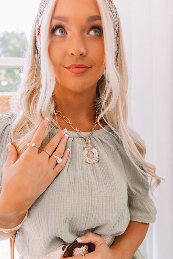 Take your look to the highest level by accessorizing with our luxe gold 'Left My Heart in LA Necklace' featuring a large link chain with an oversized ultra textured hoop pendant!