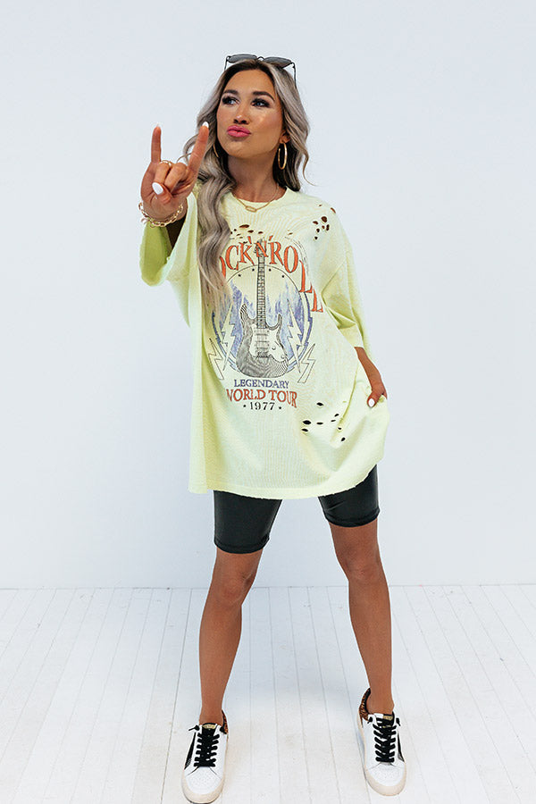 Legendary World Tour Oversized Distressed Tee In Neon Lime
