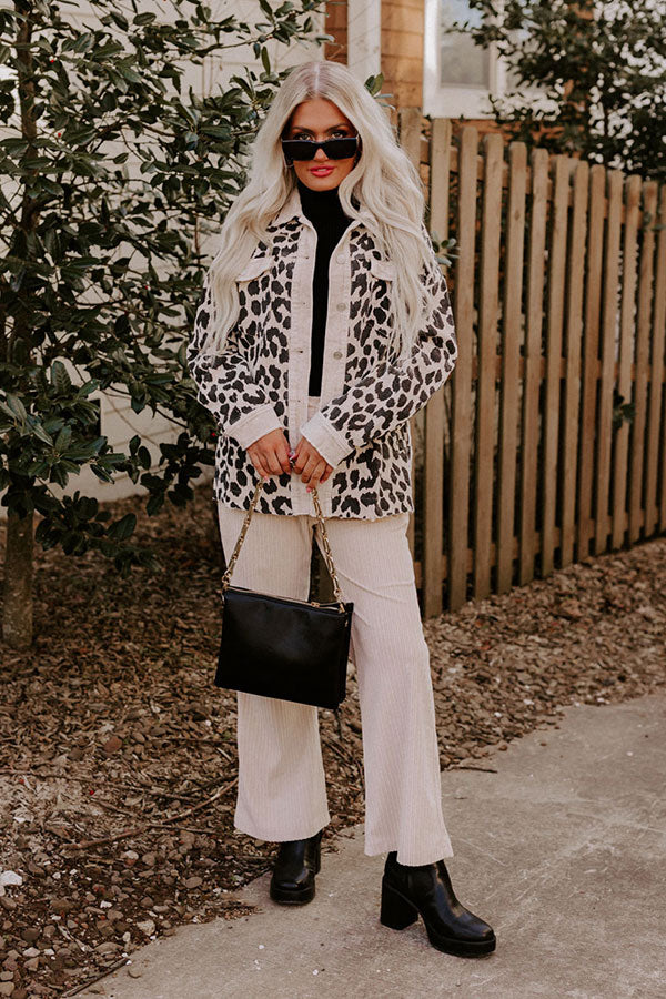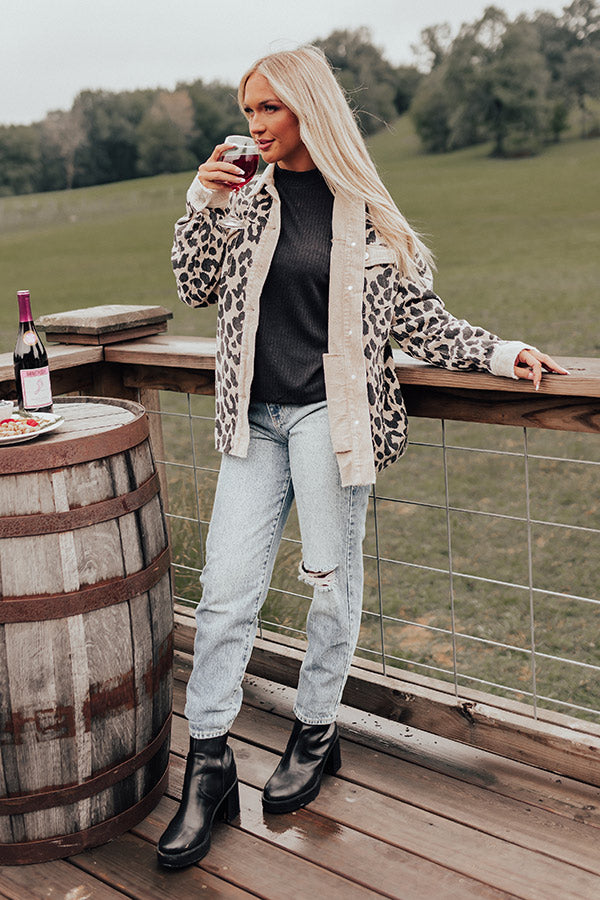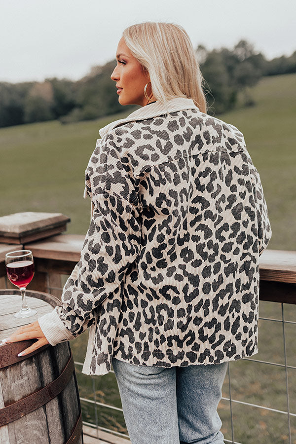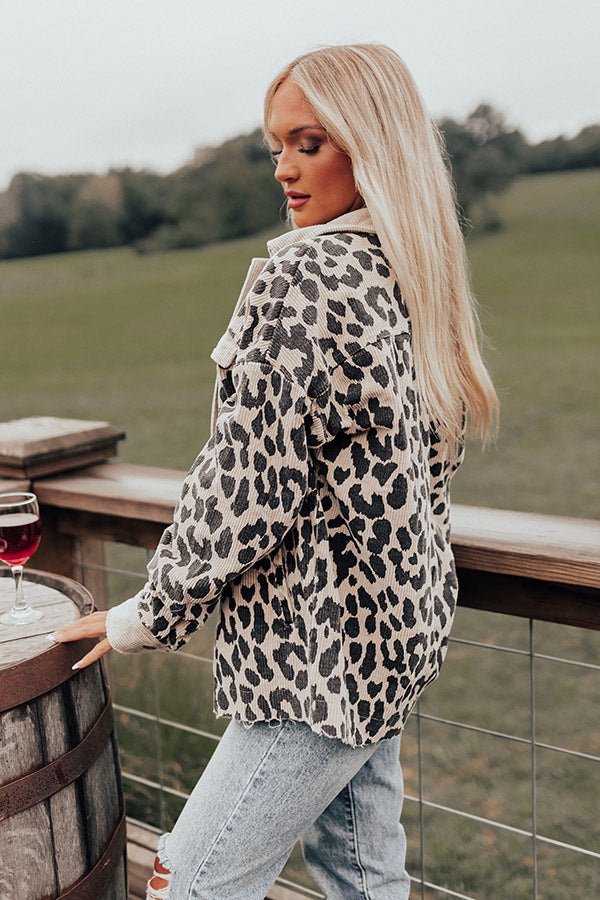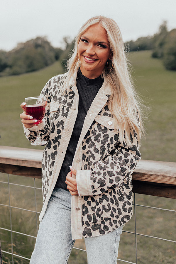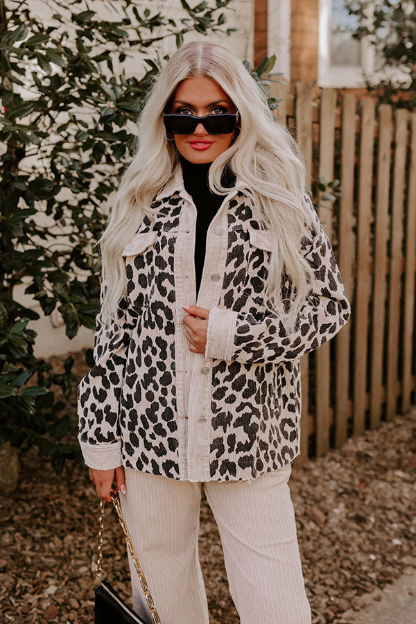 Leopard And Merlot Corduroy Jacket in Beige