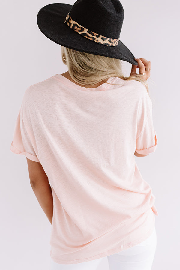 Show off your super mama powers with this adorable peach colored tee featuring soft lightweight material with bold leopard print block lettering on the front, a high rounded neckline, short loose sleeves, and a relaxed silhouette that falls into a straight hemline that can be knotted! You can style this casual cutie a variety of ways, like with some white flares and wedges and a matching black crossbody and faux leather hat, but you can also wear it with some frayed black shorts, "The Delaney Sneaker in Leopard," and our "Sunshine Suite Sunnies in Black!" Measurements