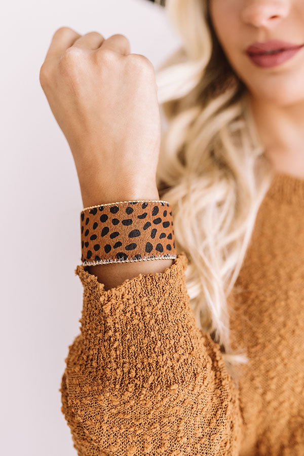This statement bracelet is perfection with its wide faux leather leopard print band and magnetic closure!