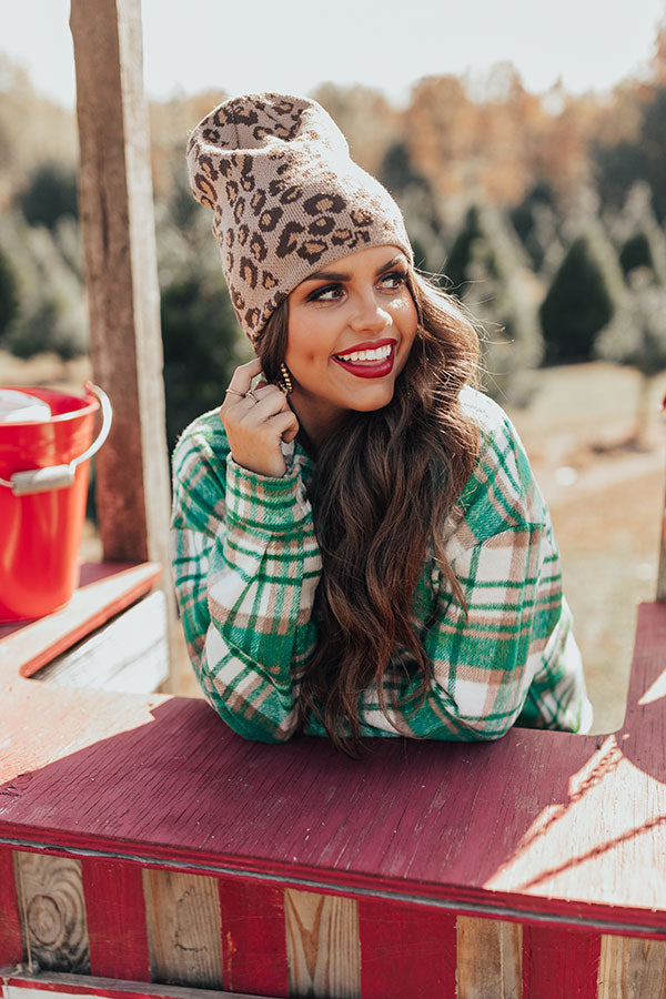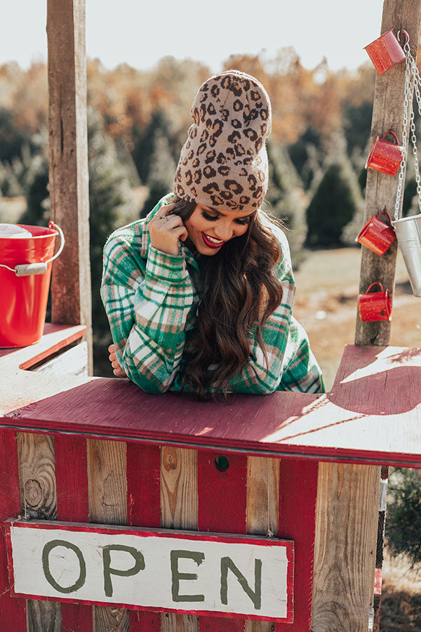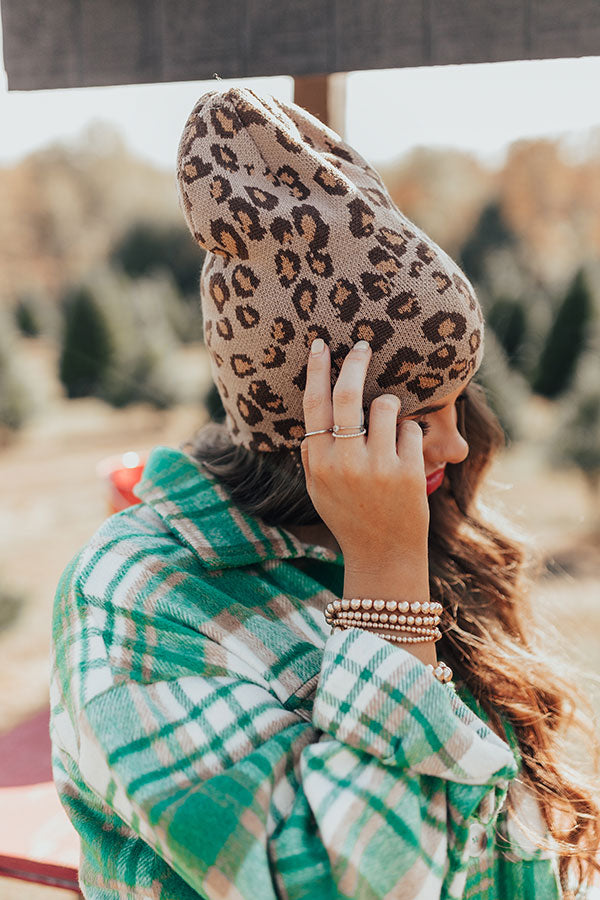 Let it snow, let it snow, let it snow since you will be warm in this adorable beanie featuring soft lightweight and stretchy tight knit material patterned with a bold brown hued leopard print!