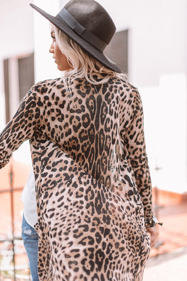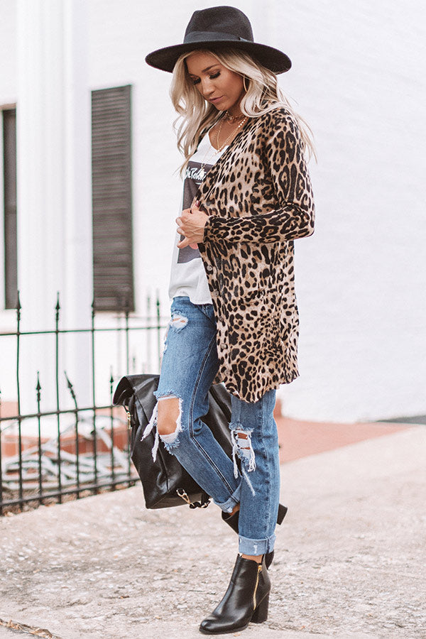 "Let there be leopard!" This chic cardigan will have your style running wild with its bold black print, lightweight tight knit material, long fitted sleeves, hidden side pockets, and open front silhouette that falls into a mid-thigh length straight hemline! You can style this versatile piece with just about anything from a basic tank to a sweater, jeans to dresses, wedges to sandals, clutches to totes, and hats to earrings! Measurements