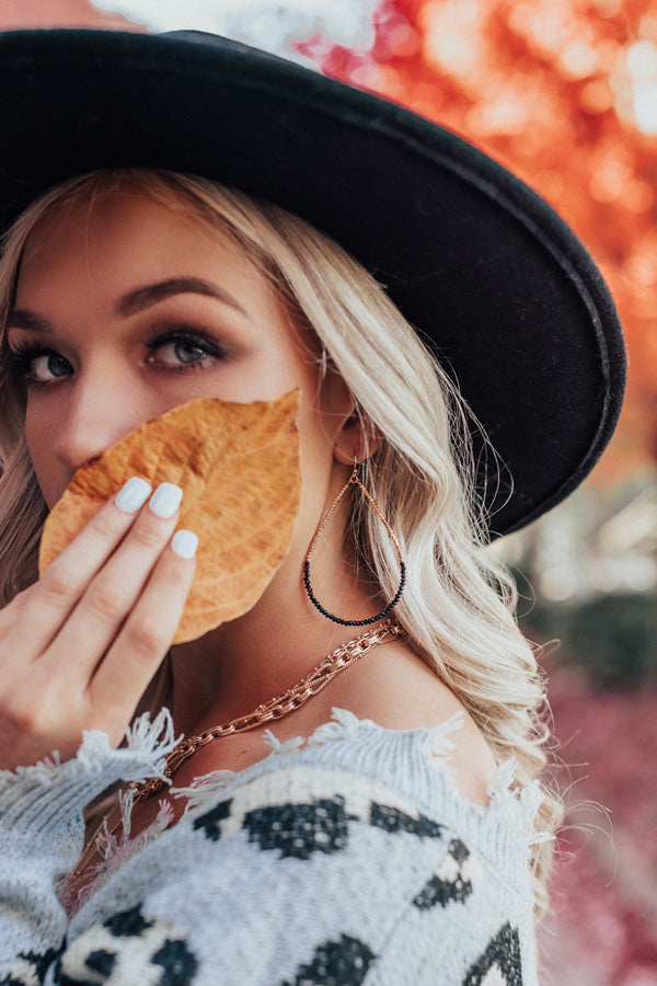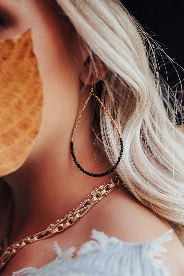 Leave a little glitz wherever your go with these dainty earrings featuring thin gold teardrop hoops with black beads!