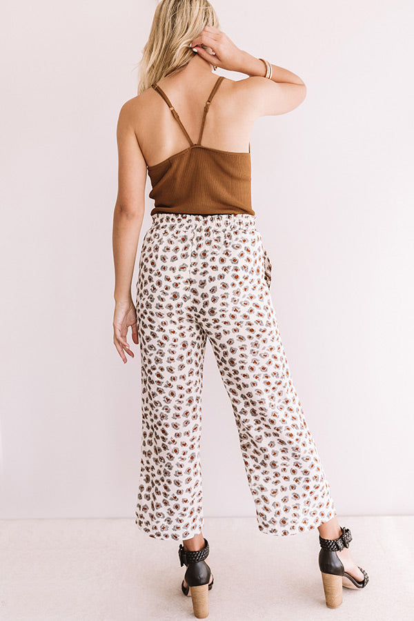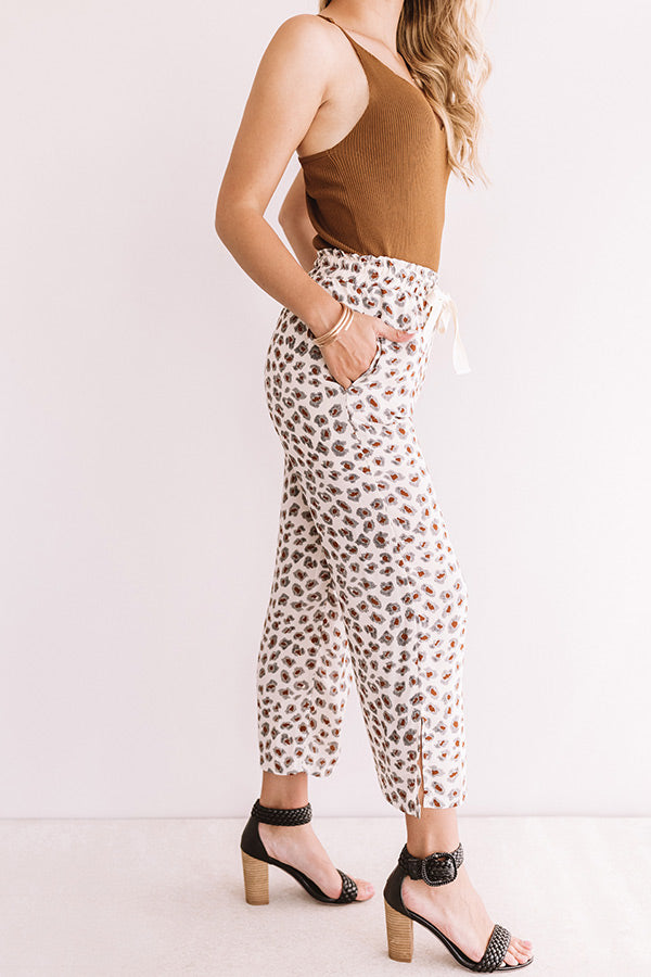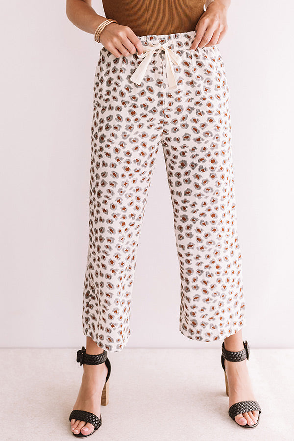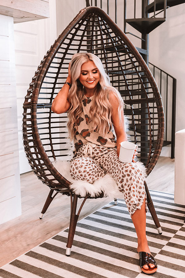 You won't be saying "let's stay in" when you treat yourself to these chic pants because you'll be looking for any reason to strut around town in them! They feature a fashionable leopard print, sleek lightweight fabric, a wide elastic waistband with a tie belt, hidden side pockets, and breezy straight fit pant legs that fall into ankle length hems! You can create the perfect girl boss OOTD when you style these with a tucked in matching tank and clutch, and a simple black heel and cardigan, or you can keep it more casual by wearing it with our a matching leopard top and sandals for the perfect lounge look! Measurements