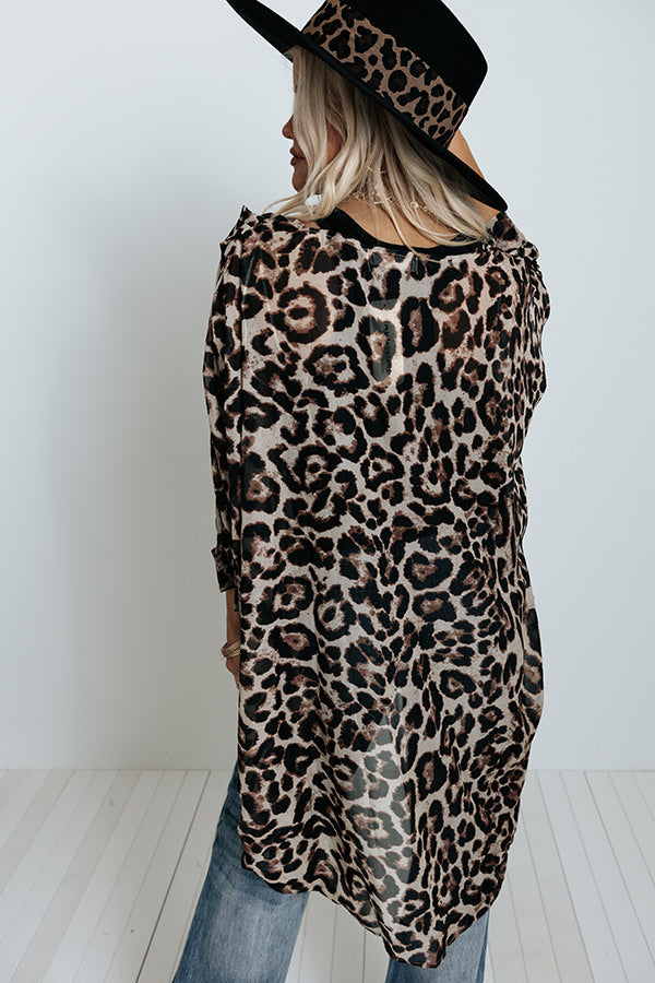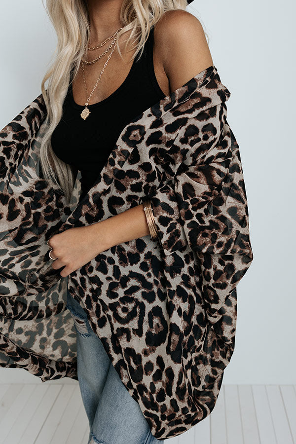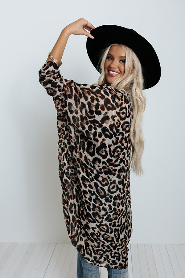 People are guaranteed to talk about how adorable this birch colored overlay is with its lightweight breezy material, bod black leopard print, loose 3/4-length sleeves, and draped open-front silhouette that falls into a rounded mid-thigh length hemline! Measurements