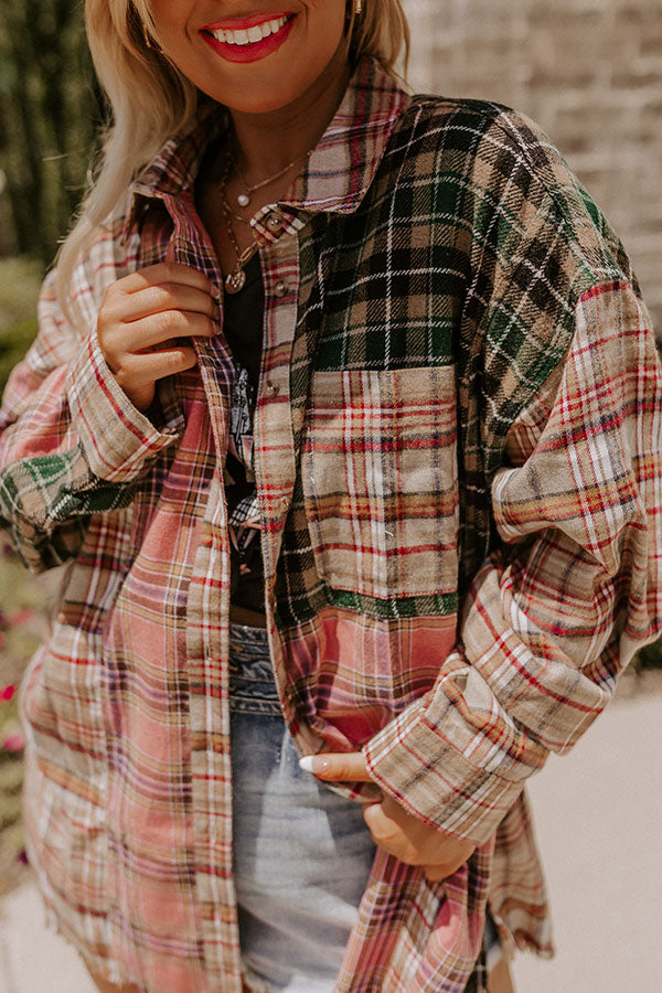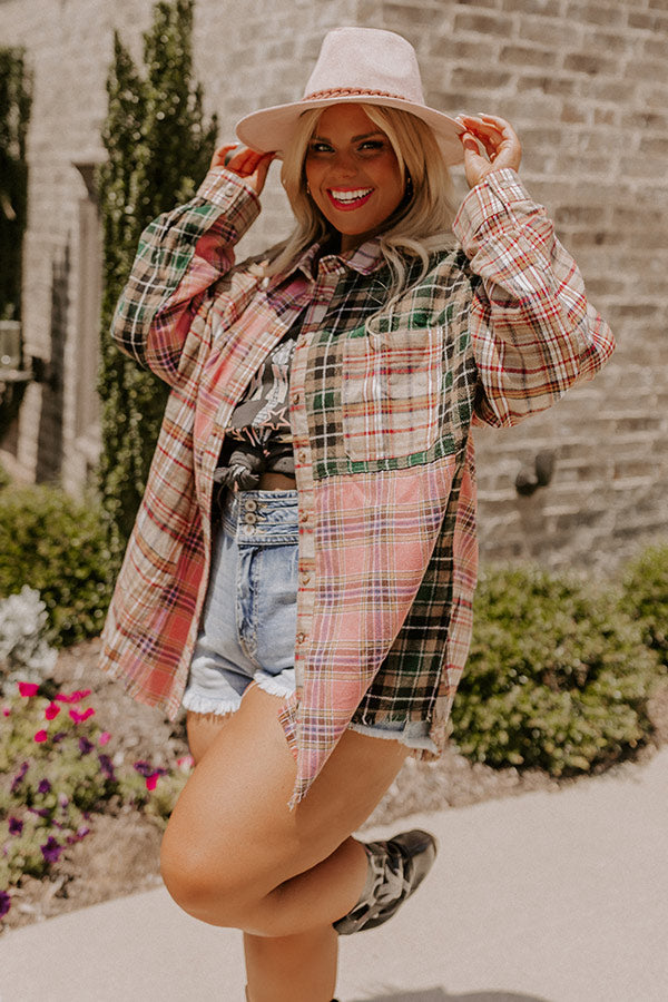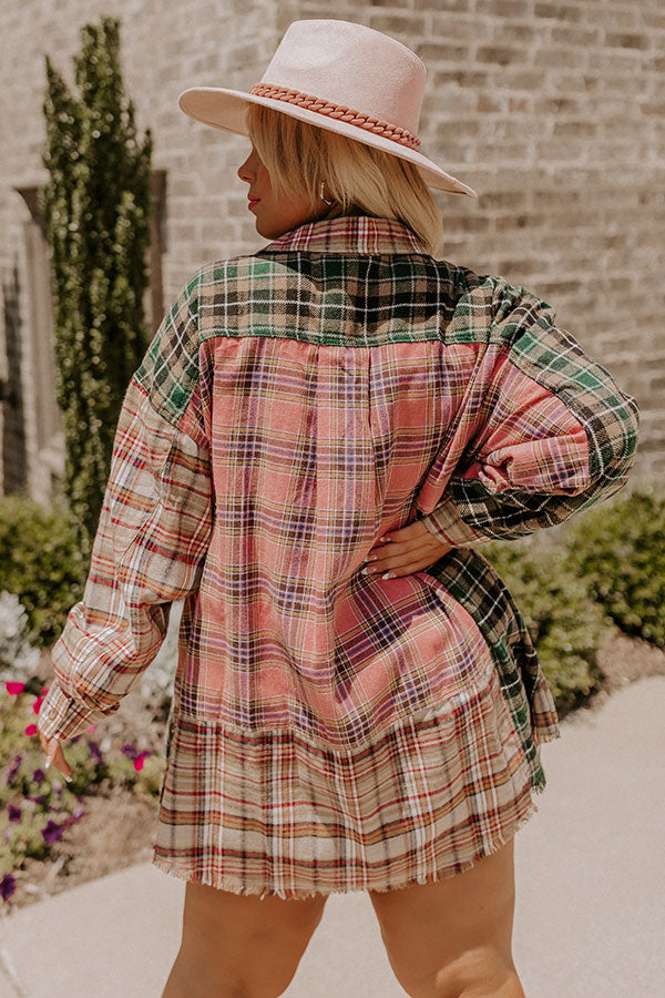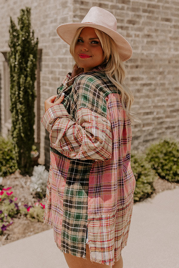 The ideal fall transitional piece, our trendy khaki plus size 'Life Lessons Flannel' features warm material patterned with a colorful plaid color block print, a button down front with a collared neckline, long loose sleeves with button closures, a single accent chest pocket, and a relaxed silhouette that falls into a rounded hemline with subtle frayed trim detailing!