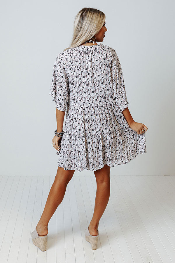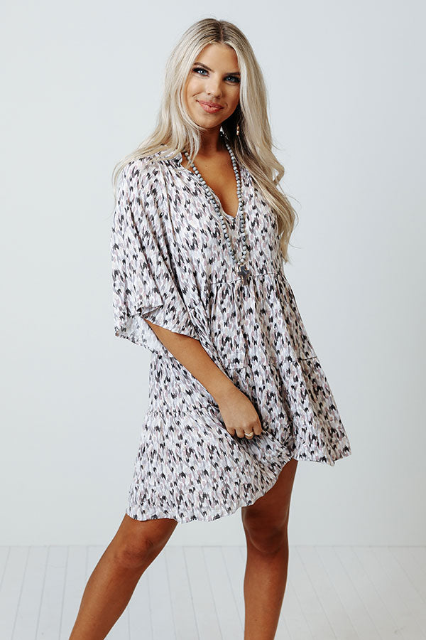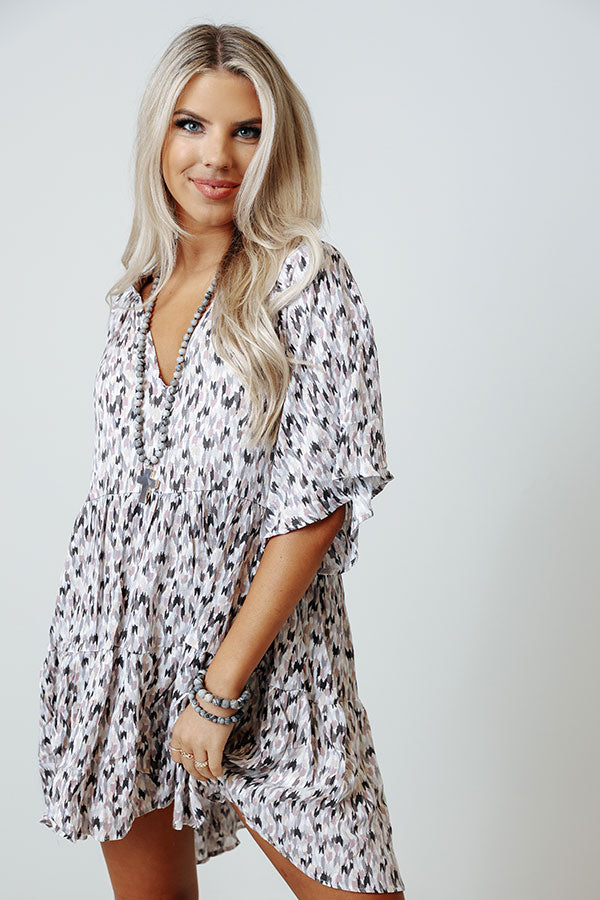 Your day is sure to be filled with happiness when you wear this adorable dress featuring lightweight material patterned with an abstract pink and grey hued spotted print, a v-cut neckline, flowy half sleeves, and a relaxed babydoll silhouette that falls into an uneven mid-thigh length hemline!