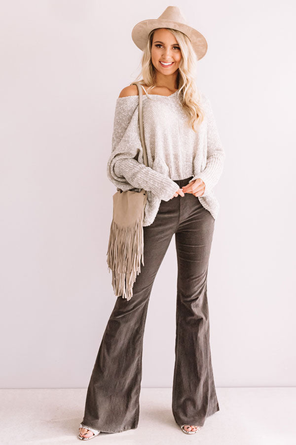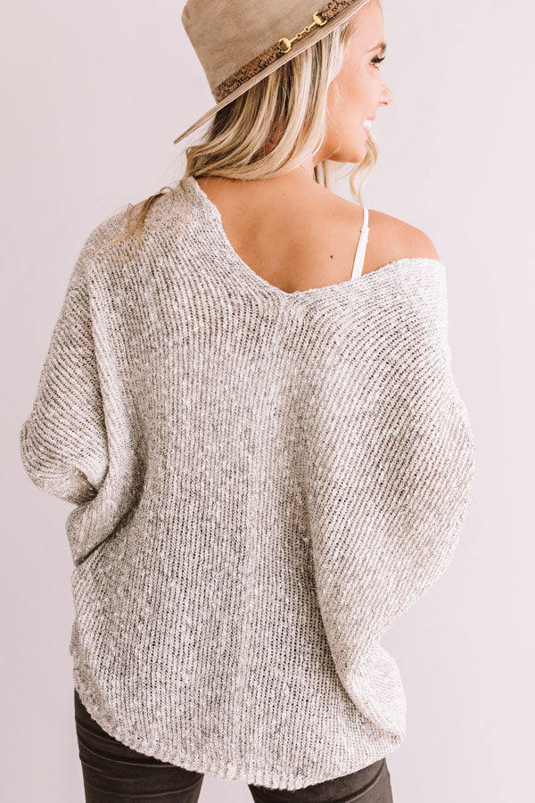 You will look fall fabulous when you wear the neutral hued 'Like A Fine Wine' sweater featuring soft loose knit material with subtle ribbed texturing, a wide v-cut neckline and upper back that can be worn off one shoulder, long sleeves with loose upper arms and fitted forearms, low front accent pockets, and an ultra draped silhouette that falls into a rounded hemline!