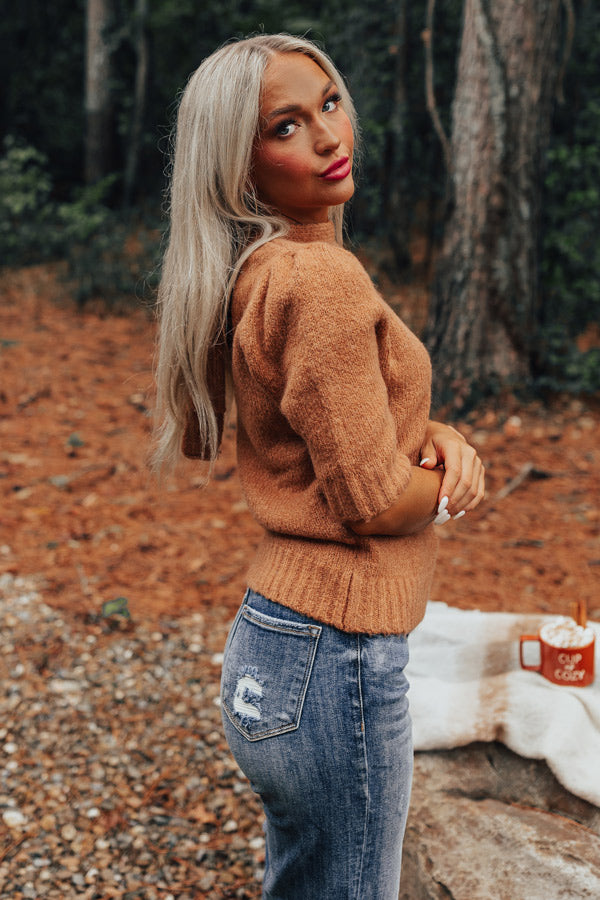 Like Clockwork Knit Sweater Top In Camel