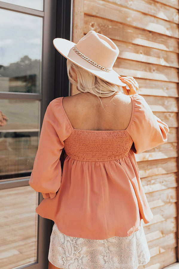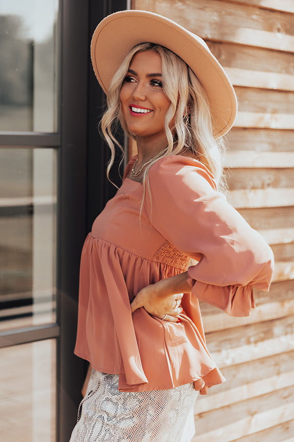Complete your look with elegance in our chic dark latte colored 'Lipstick And Lattes Top' featuring lightweight flowy material, a square neckline and upper back, 3/4-length bishop sleeves with flared cuffs, and a relaxed silhouette that falls into a straight hemline!