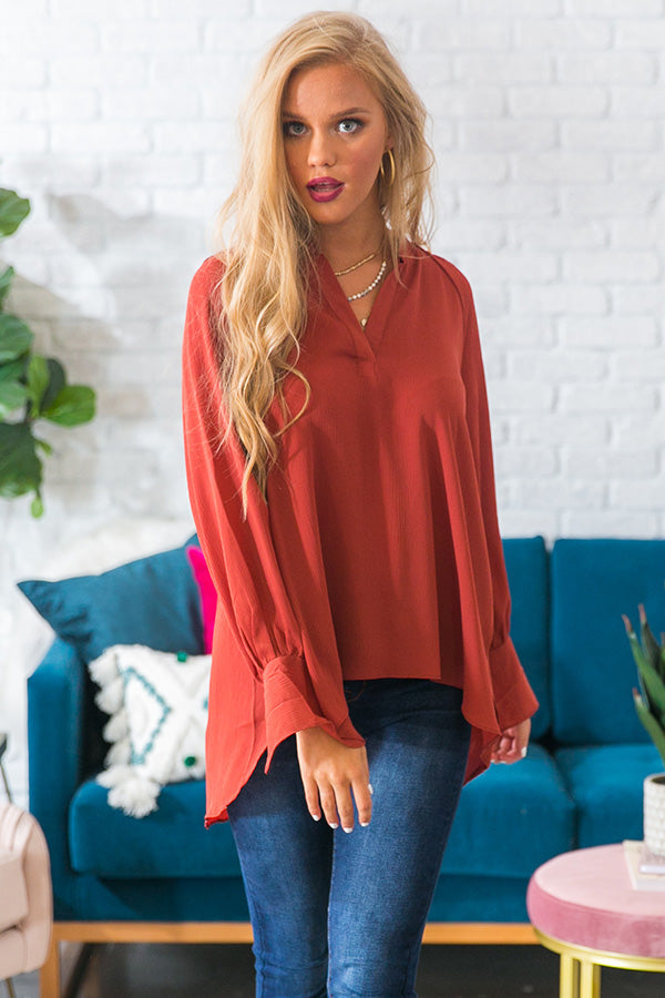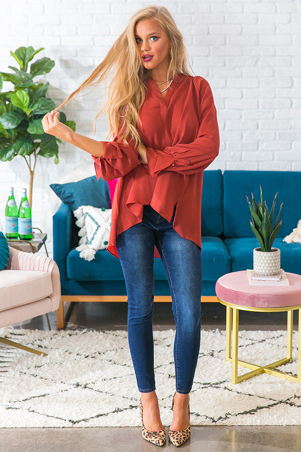 Live the luxe life in this stylishly simple stunner! This v-neck top is a relaxed fit with cute button details at the cuffs, a high-low hem, and side slits. It's lightweight and the perfect piece to wear any season. Pair it with your favorite skinny jeans and heels, and you're all set to live in comfy luxury!