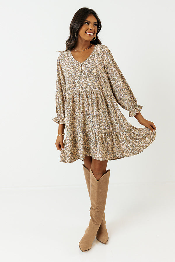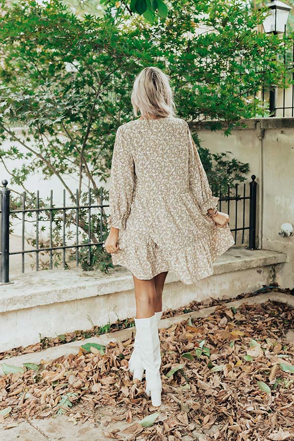 Living For Love Floral Babydoll Dress In Light Beige