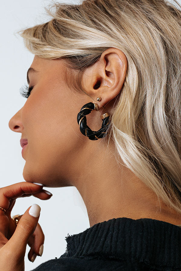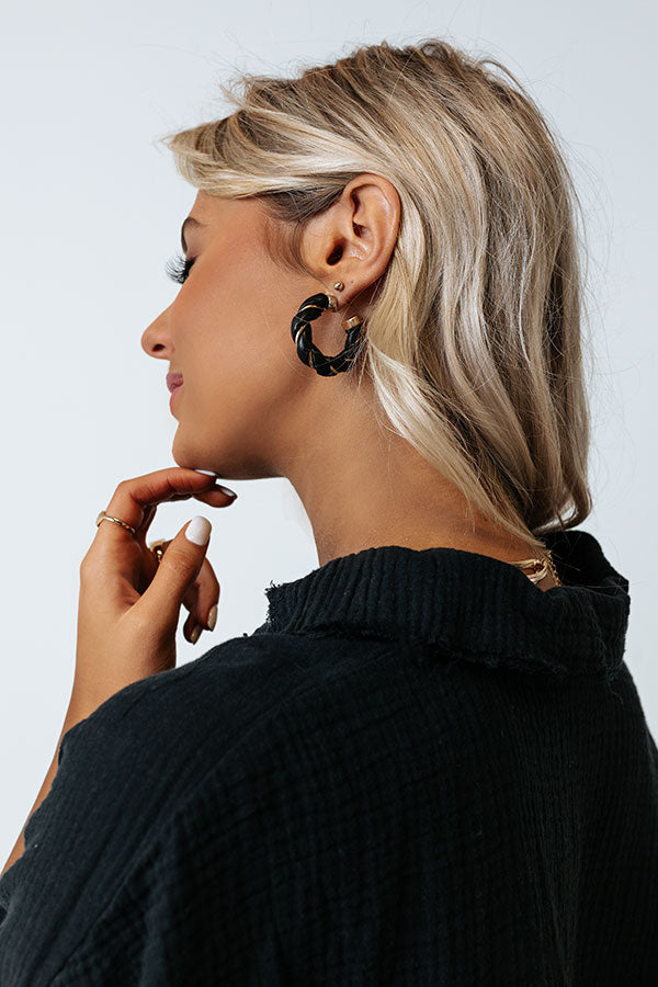 The perfect summer accessory, our cute 'Living In London' earrings featuring twisted black open hoops!