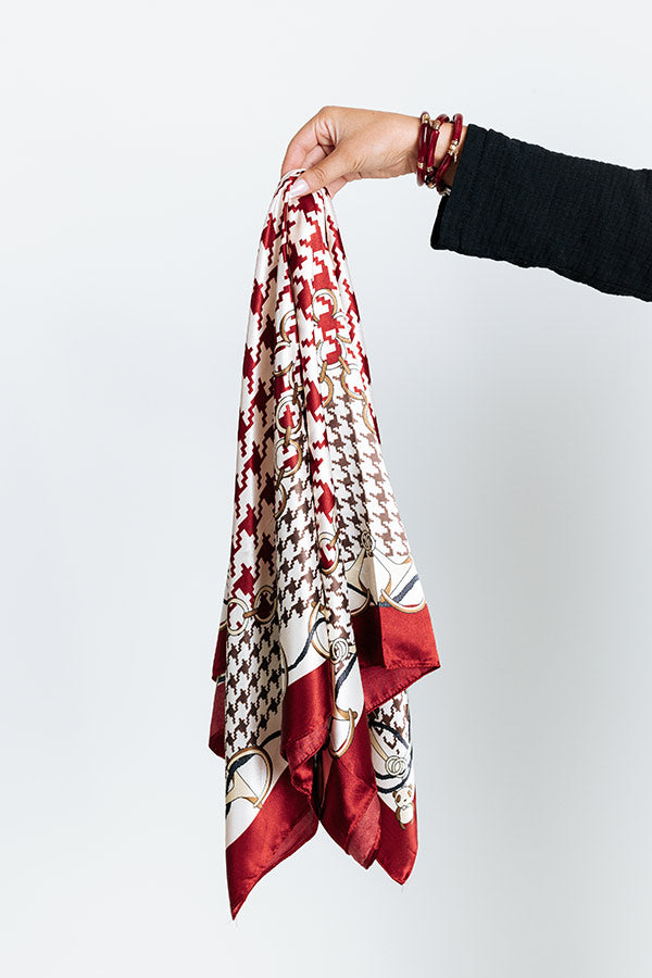 You will be living in style when you complete your look with this chic scarf featuring lightweight silk-like material patterned with a luxe brown and wine hued herringbone pattern!