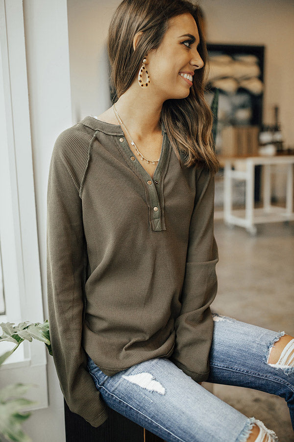 Lodges And Lattes Henley Top In Olive