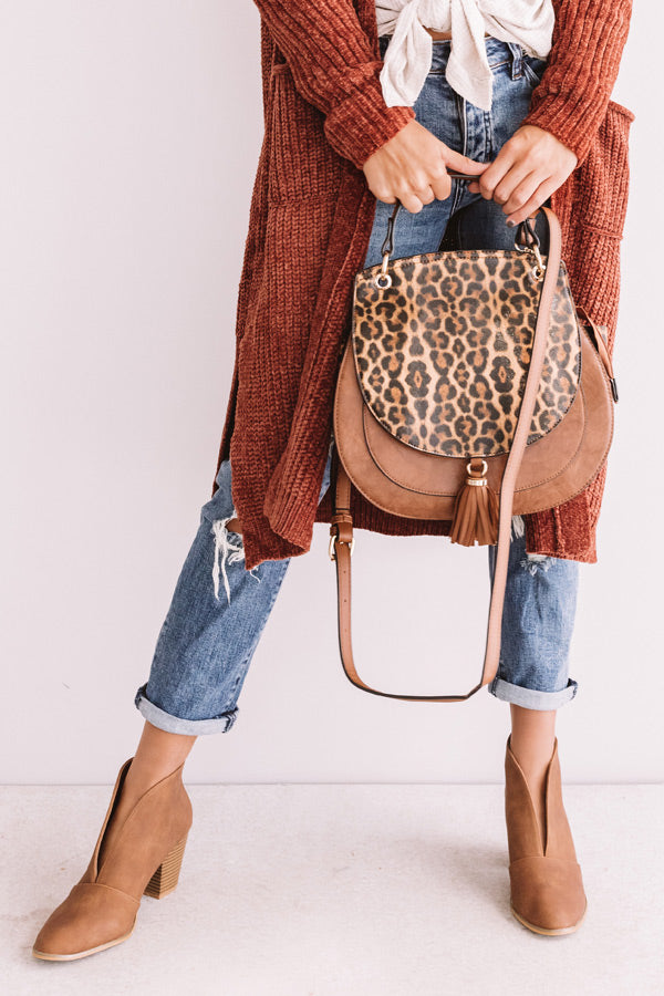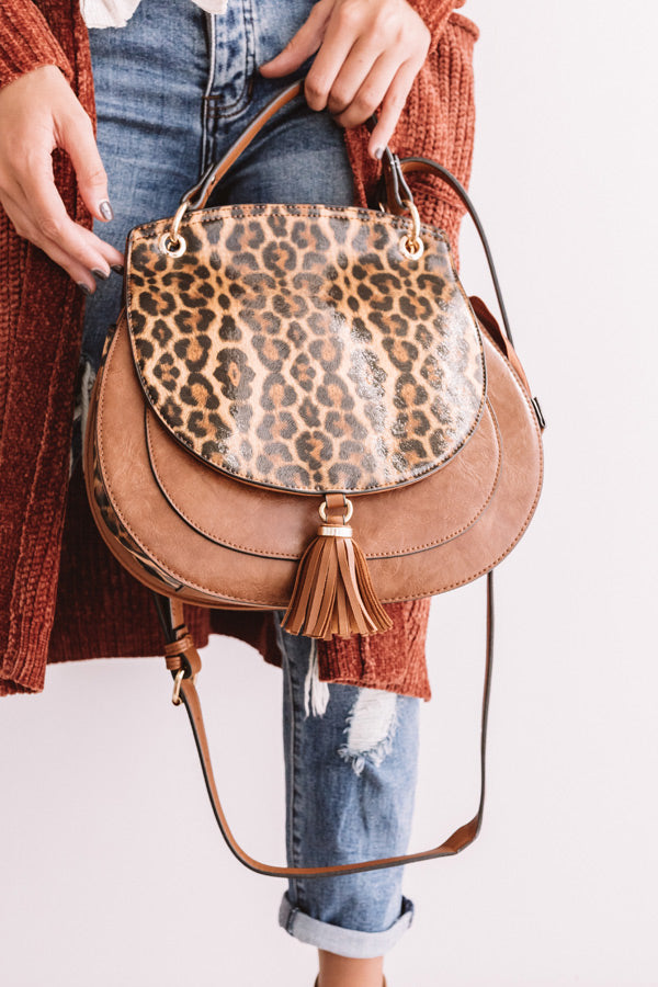 Show off your amazing handbag style when you accessorize with the brown "London Bridge" tote featuring faux leather material, bold leopard print accents, a flap snap button closure with an accent tassel, a short tote handle, a fully lined spacious pouch with a zip closure and additional interior pockets, and a removable and adjustable crossbody strap!