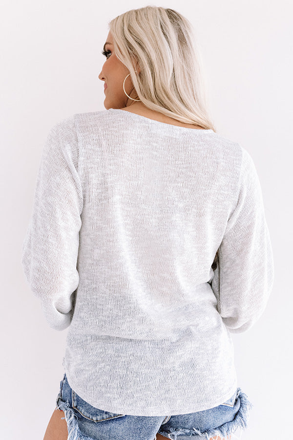 Slay all day in our simple but significant grey "London Leisure" top featuring ultra lightweight tight knit material with subtle texturing, a scooped neckline, long oversized bubble sleeves with fitted elastic banded cuffs, and a relaxed silhouette that falls into a rounded hemline! We have styled this everyday essential with some distressed denim shorts, neutral wedges, and a blush crossbody, but you can also wear it with some black skinnies, "The Britton Snake Print Bootie," and a matching snake print hair scarf! Measurements