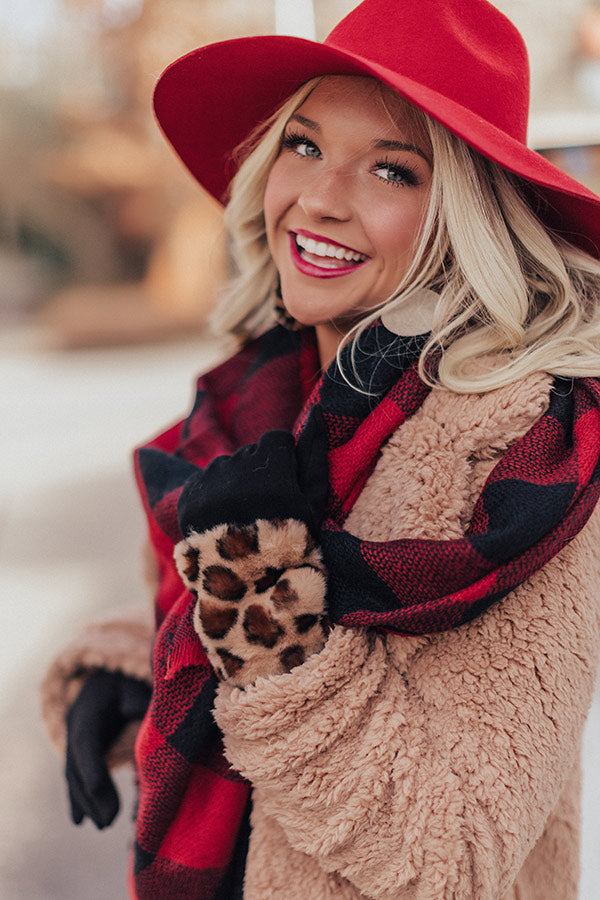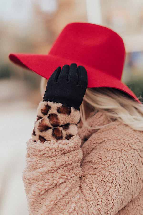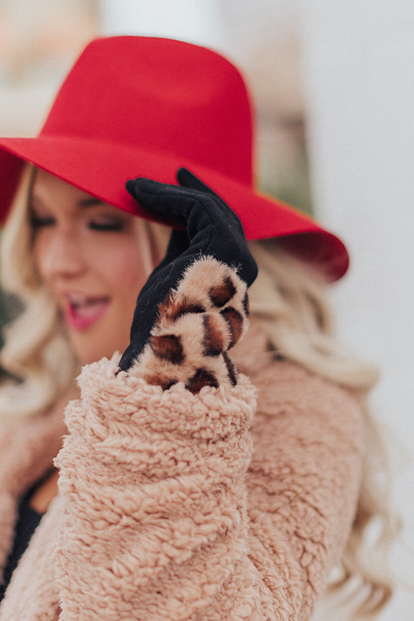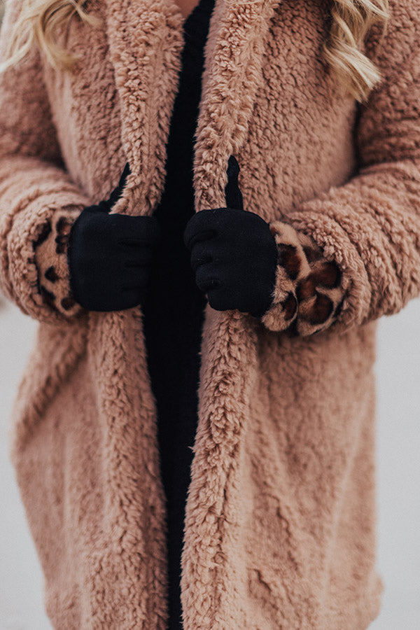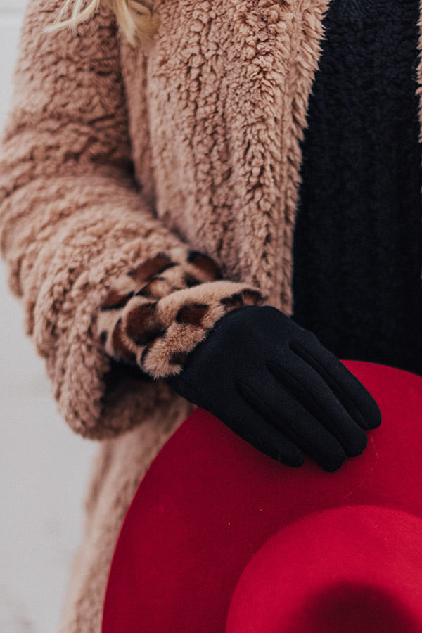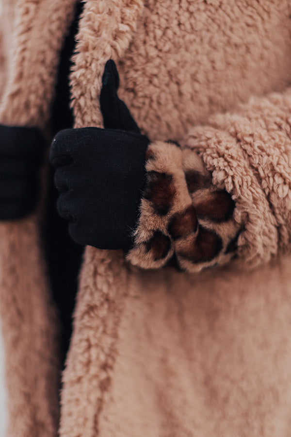 Stay extra warm and protected from the chilly "London snowfall" with these adorable brown smart touch gloves featuring soft lightweight tight knit material and outer faux fur detailing patterned with a bold black leopard print!