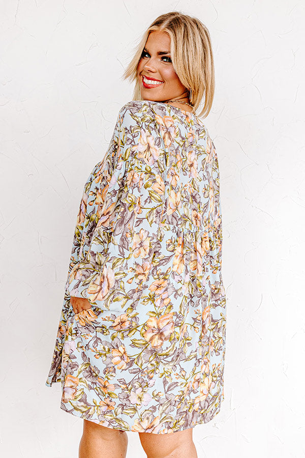 London Tea Floral Babydoll Dress In Sky Blue Curves