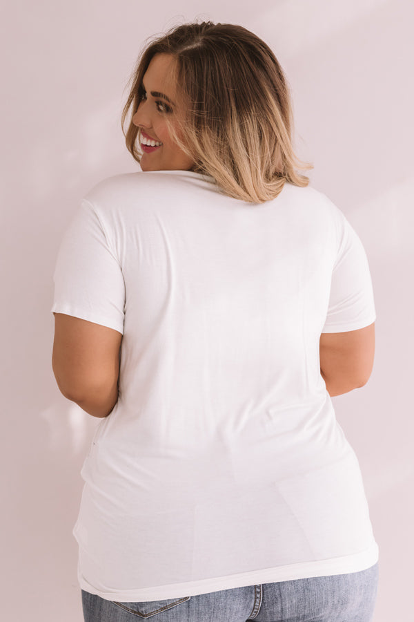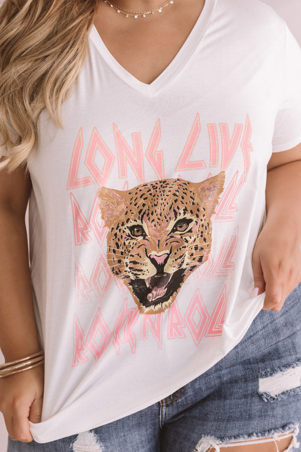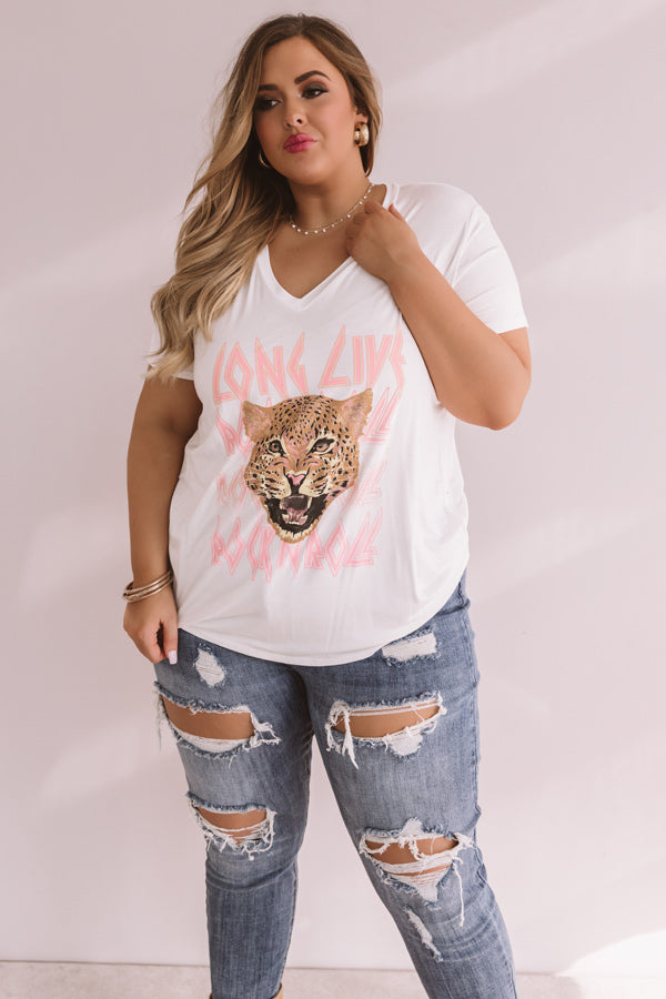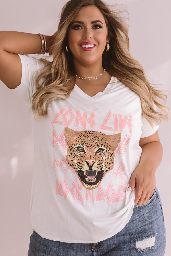 Long Live Rock N' Roll V-Neck Boyfriend Tee In Ivory Curves